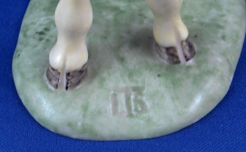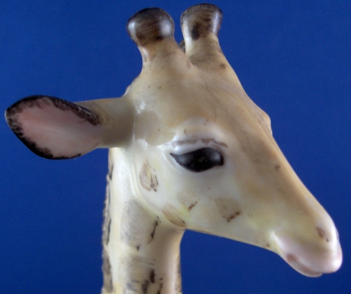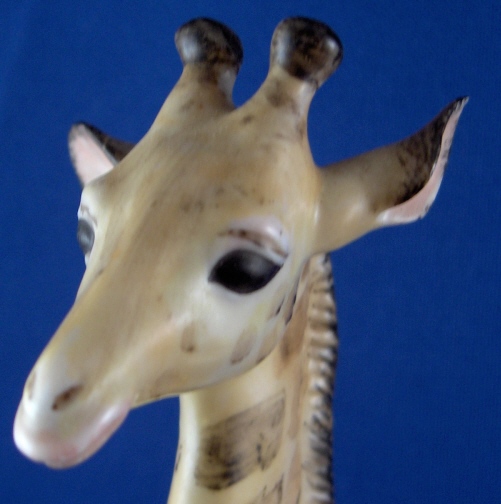 This is a figurine of a giraffe made by Nymphenburg during the mid 20th century. It was designed by Terletzki-Scherf and her initials are impressed in the top front of the base. It is superbly modeled and handpainted and really looks quite real. The piece is 9.25 inches tall, 2.625 inches wide and 5 inches long so rather large. It is marked with the impressed shield mark underneath as well as the model number 667 over 8 and the green shield mark with the word Nymphenburg underneath. The figure is in perfect condition. Please email me for more information or other pictures.
