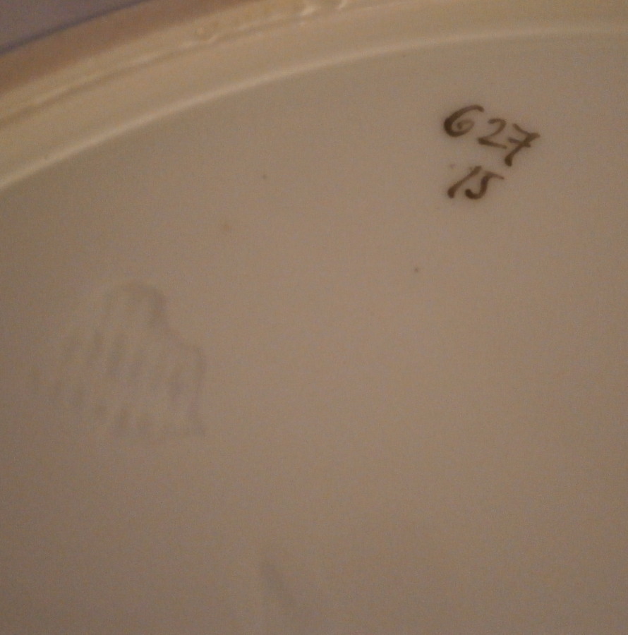 This is a very hard to find serving bowl dish made by Nymphenburg in the 20th century. I ahve actually never seen another in all my years of enjoying this set. It is from the King's or Pearl service made for the electoral court around 1792-1795 designed originally by Dominikus Auliczek. The original set is still in the possession of the family and thus any pieces of this design are later copies. The dish is 12 sided and has the pearl design to the very edge (refers to the little blue pearls painted on). It is hand painted with a scene in black in the center of Schloss Nymphenburg - a scene that seems to often be on the more important dishes of this set which make sa lot of sense. And to finish of a perfect design there is lots of gold and blue trim. The bowl is 2.125 inches tall and 10.375 inches in diameter. It is marked with the green shield mark with the word Nymphenburg underneath, the impressed shield mark, an impressed four, some black numbers and the title to the scene in the front Nymphenburg palace in black. The piece is in perfect condition with some minor use marks to the gilding. Please email me for more information or other pictures.