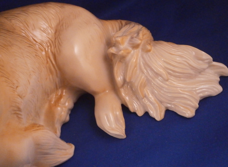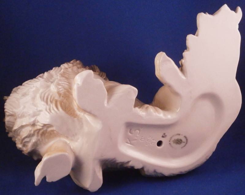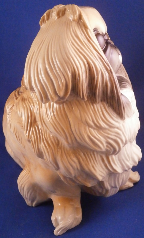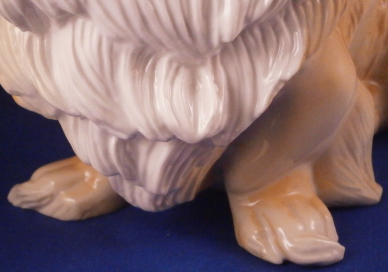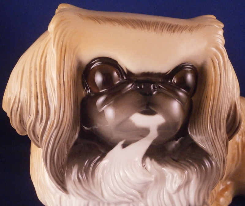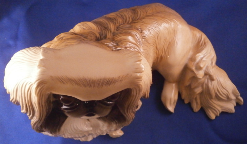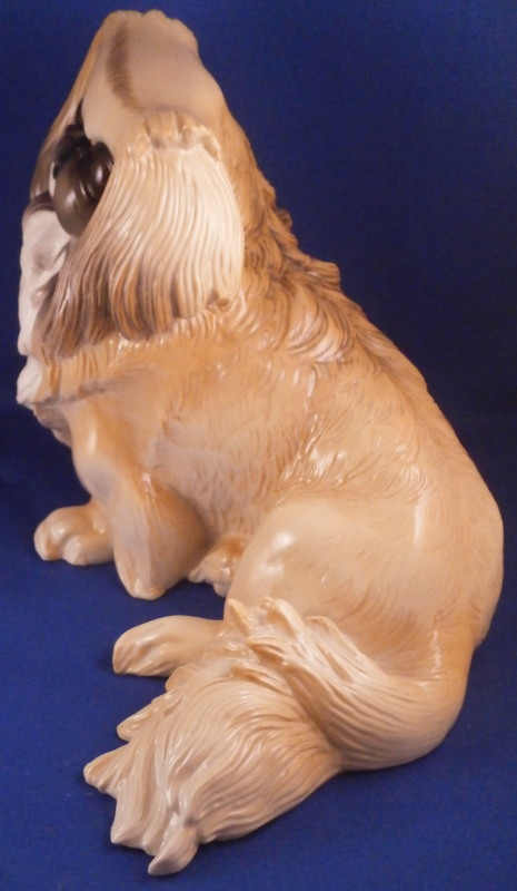 This is a figurine of a dog made by Nymphenburg in the later 20th century. It is the sitting version of the Pekinese dog originally modeled by Konrad Schmidt in 1927. An amazing piece that is quite large with lots of detail and hand painted to perfection. One of the cuter dogs I have ever seen in porcelain. The dog is 7.25 inches tall, 6.25 inches wide and 10 inches long. It is marked with the impressed shield mark underneath with the number 632 over 31 underneath it. Also marked with the green shield mark with the word Porzellan Manufaktur Nymphenburg and the letter F under the shield and the artist initials K.S. for Konrad Schmid.The figure is in perfect condition! Please email me for more information or other pictures.