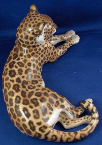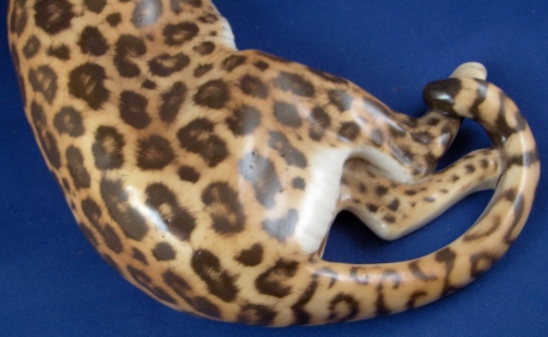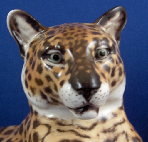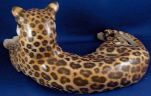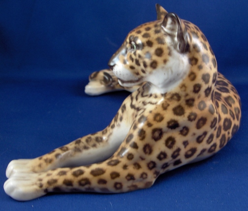 This is a superb figurine of a leopard made by Nymphenburg in the early 20th century. It was first designed by Kaerner around 1911 and is one superbly modeled and painted animal figurine! The leopard is 4.375 inches tall and 10 inches long. The figure is marked with the impressed shield mark underneath with the model number 153 and 11. He is in perfect condition with some tiny firing spots from the making. An amazing piece! Please email me for more information or other pictures.
