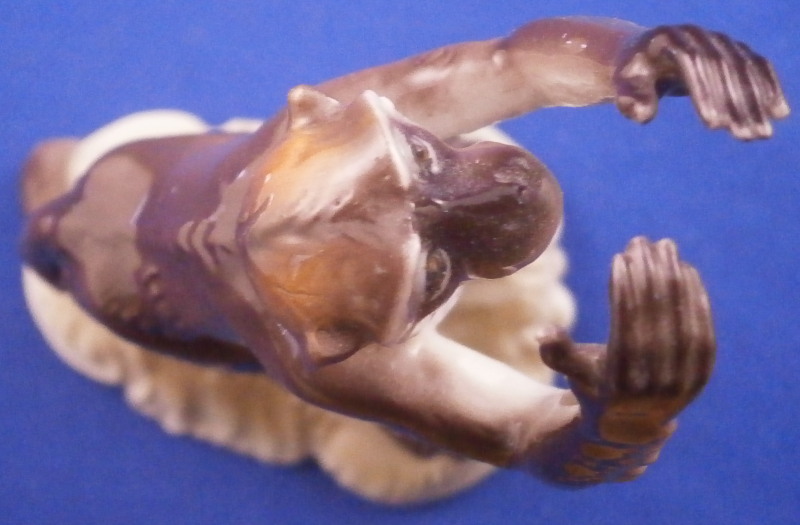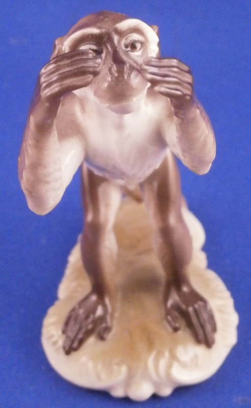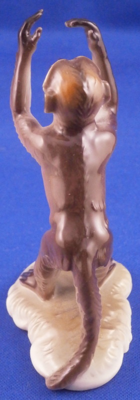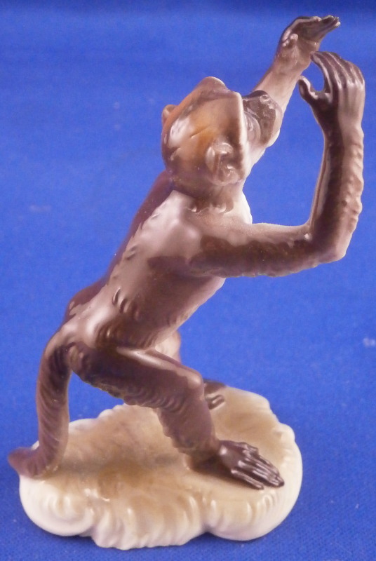 This is a fun figurine made by Nymphenburg in the early 20th century. It is of a begging monkey and was first designed around 1926 and this piece is from that time period. Not an easy to find piece and this one here is especially nicely hand painted! The skinny monkey is standing on a grass base with its arms raised and the tail supporting him in the back. A superbly modeled piece and perfectly painted to be really cute and elegant! The figure is marked underneath with the impressed shield mark as well as numbers 616 over 0. The piece is in perfect condition. The figure is 3.5 inches tall, 1.625 inches wide and 2.25 inches deep. Please email me for more information or other pictures.