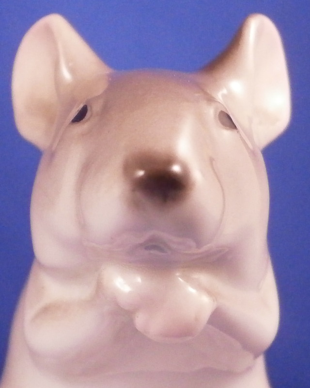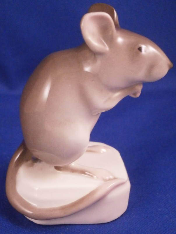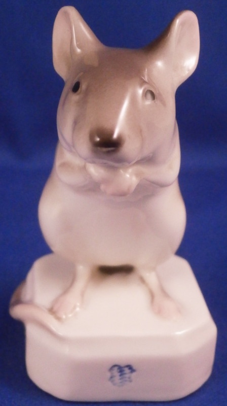 This is a really fun figurine of a cute little mouse made by Nymphenburg during the mid 20th century right after WWII. The little guy is nicely modelled and is painted to perfection. The figure is about 2.625 inches tall, 1.5 inches wide and 2 inches deep. The figurine is marked with the impressed shield mark on the front of the base that was colored in blue as well as another impressed shield mark underneath with the incised numbers 474 over 4. Also their green shield mark with the name Nymphenburg under it and Western Germany as shown. By its tail on the back of the base are the artist initials for the painter in black as shown. The piece is in perfect condition and super cute! Please email me for more information or other pictures.