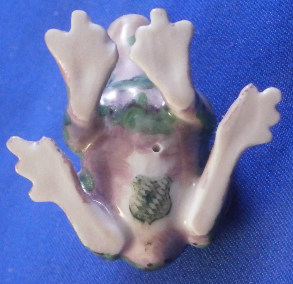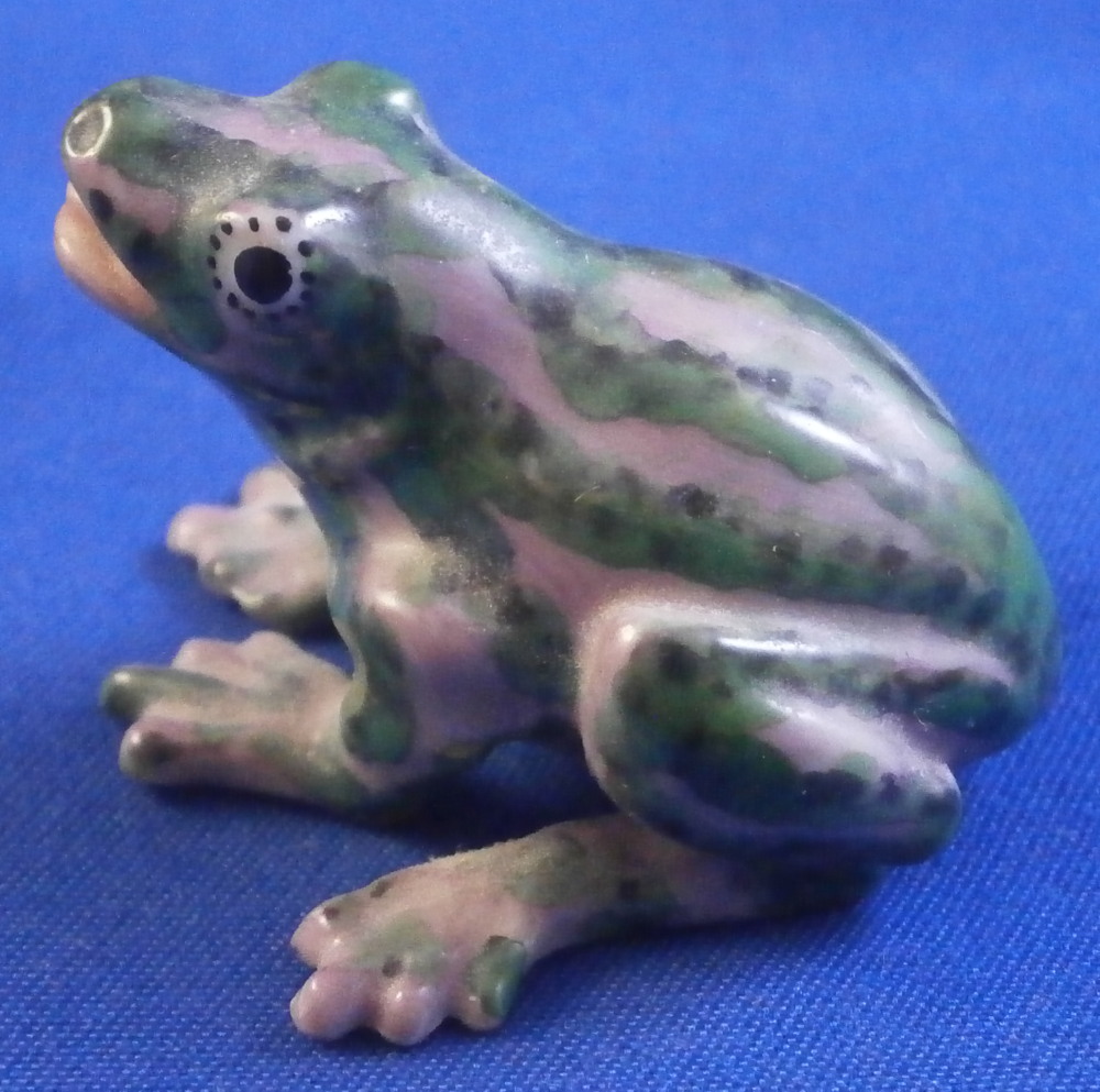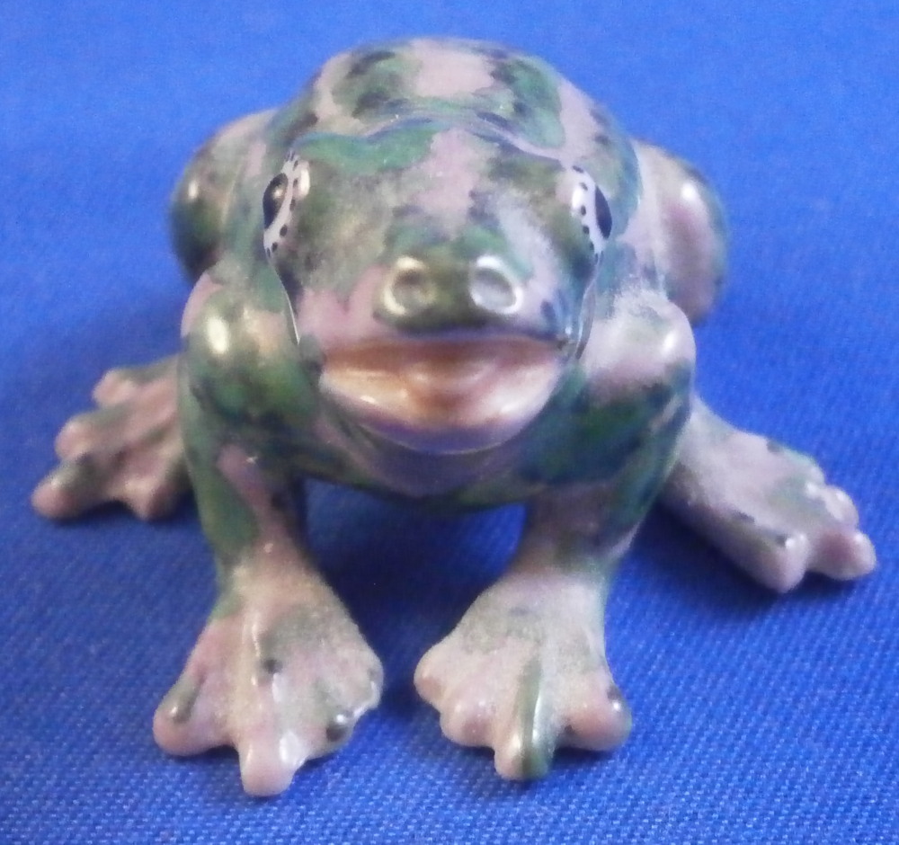 This is a really cute and fun figurine of a miniature frog made by Nymphenburg in the 20th century. I have never seen this model and it is super cute. The figure is modeled superbly and hand painted jsut as well. Lots of little details to it. The figurine is in perfect condition. It is only marked with the green shield mark underneath because nothing else fits. The figurine is 1 inches tall, 1.35 inches wide and 1.375 inches long. Please email me for more information or other pictures.