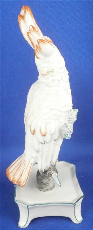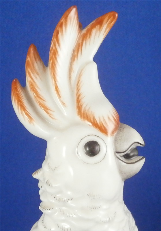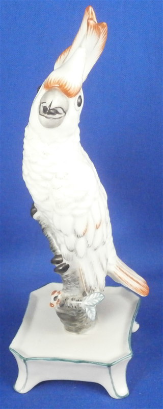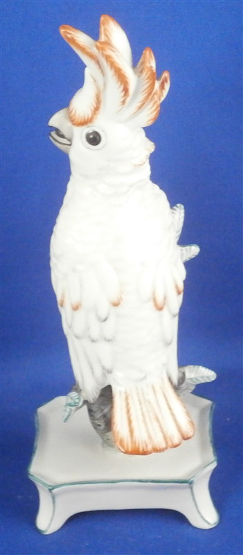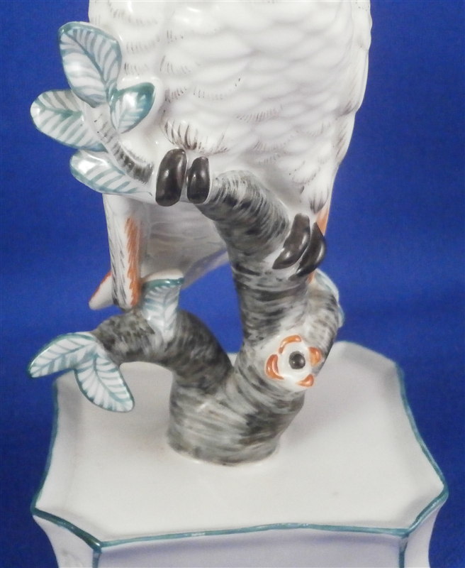 This is a figurine of a cockatoo bird made by Nymphenburg in the 20th century. It is handpainted elegantly with nice colors and is just plain cute. This one is the rarer orange colored version. The bird is sitting on a branch in a flower pot. The piece is 6.5 inches tall, 2.5 inches wide and 2.25 inches deep. Marked with the impressed shield mark as well as numbers 677 and P. Also marked with an incised artist mark LS for L. Scherf. It is also marked with the green Nymphenburg shield mark as shown in the pictures. Another impressed shield mark on one front leg of the flower pot. The figurine is in perfect condition. Please email me for more information or other pictures.