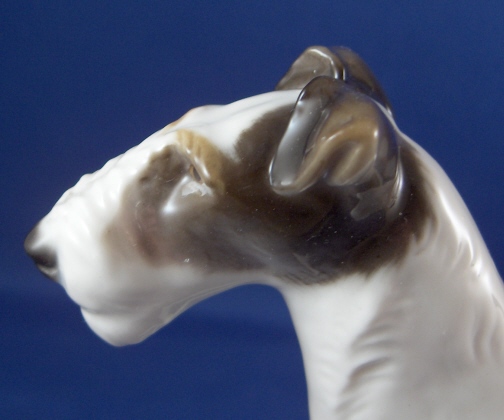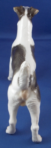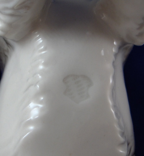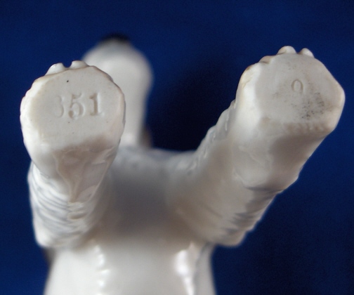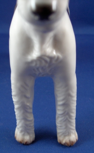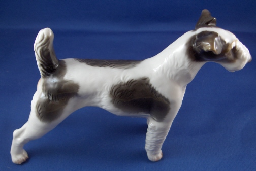 This is a figure of a dog (I believe it is some sort of terrier but I stink at IDing dog breeds) made by Nymphenburg in the early 20th century. A rare original period piece which is signed by the artist! He is superbly modeled and painted just right to make him very elegant. The dog is 5.125 inches tall, 2 inches wide and 6.5 inches long. Marked with the impressed shield mark underneath on his belly with the number 651 impressed under one paw and 9 under the other. Also the artist initials R.B. which I am fairly sure has not been identified. He is in perfect condition. Please email me for more information or other pictures.