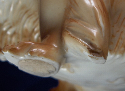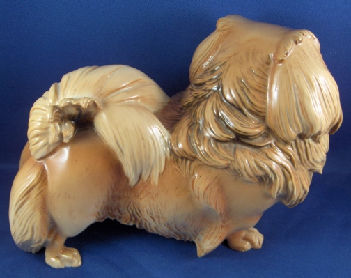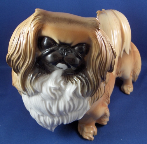 This is a figurine of a dog made by Nymphenburg during the original period in the early 20th century. It is a Pekinese I believe and he is superbly modeled and handpainted. One of the cuter dogs I have ever seen in porcelain. The dog is 6 inches tall, 4 inches wide and 8 inches long so rather large. It is marked with the impressed shield mark underneath with the number 696 over 5 underneath it. Also marked with the green shield mark with the word Nymphenburg and the artist initials KS for Konrad Schmid. Also signed by the artist that painted him on his right back leg TBL or something like that. He is in great condition with a small painted over chip to the end of one of the hair extensions by his left front paw that is not obvious at all when on display. Please email me for more information or other pictures.