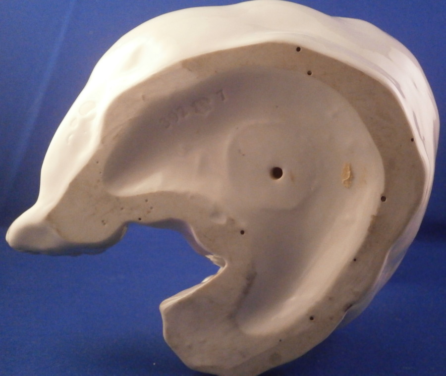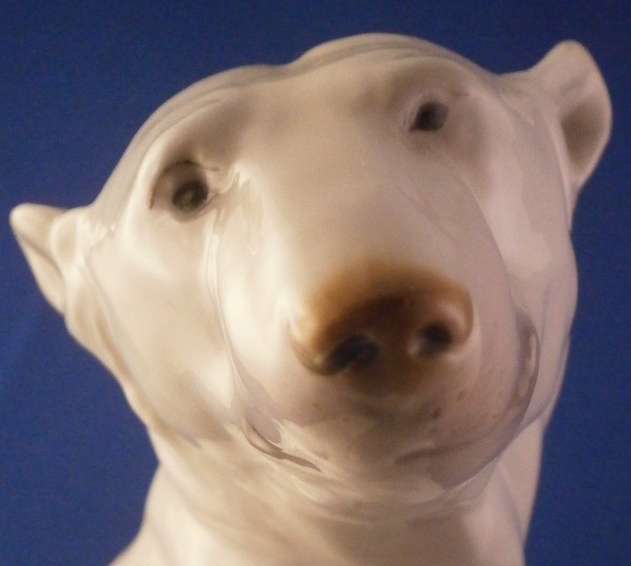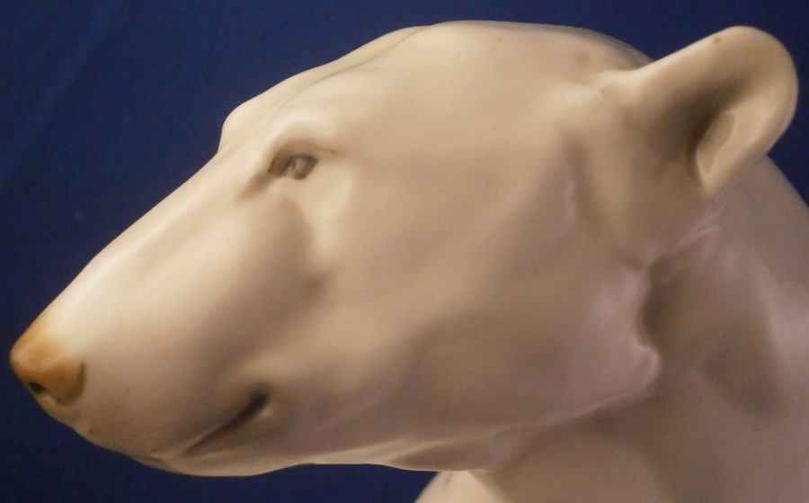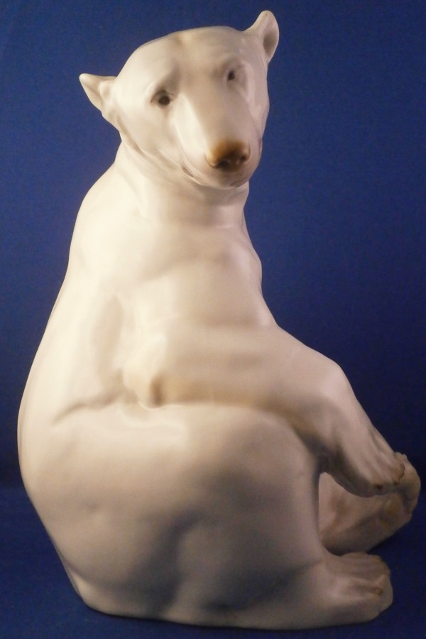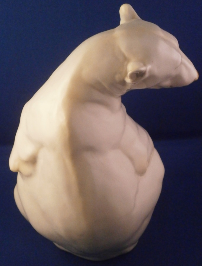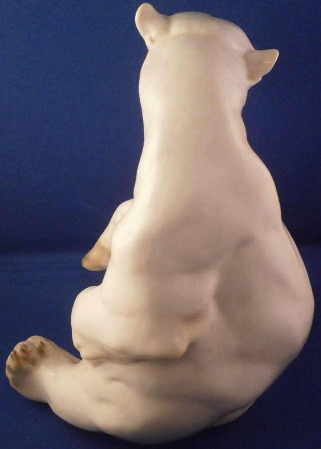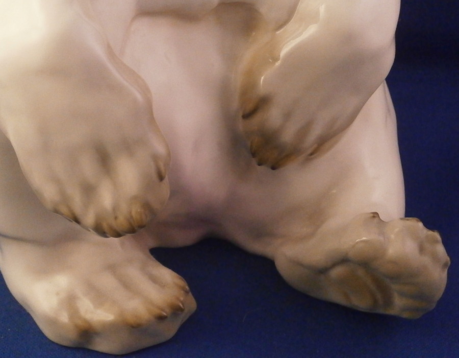 This is a figurine of a polar bear made by Nymphenburg during the early to mid 20th century. Designed by Willy Zuegel - he is an amazing figure to look at. Amazingly modeled and painted just enough to look real. One of the nicer versions I have come across but these are not common at all and quite hard to find actually! The figure is 8.25 inches tall, 5.5 inches wide and 5.75 inches deep. The figurine is marked with the impressed shield mark underneath with the number 392 and 7 as well as the artist name W. Zügel impressed into the back bottom edge which is very hard to see but is right next to the painter's initials in black. The piece is in perfect condition except for a couple of tiny black firing spots from when he was made - normal to their larger figurines. Quite fun to look at really! Please email me for more information or other pictures.