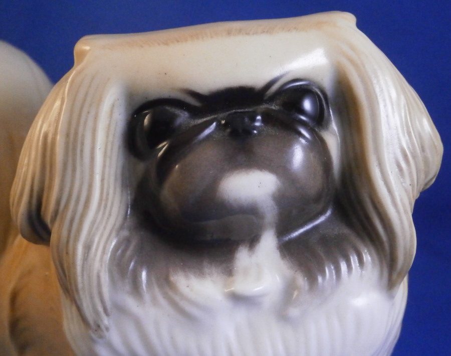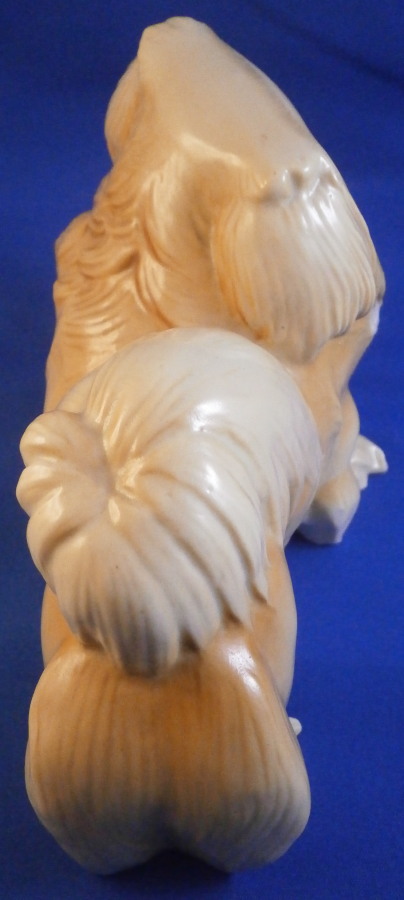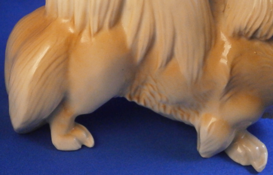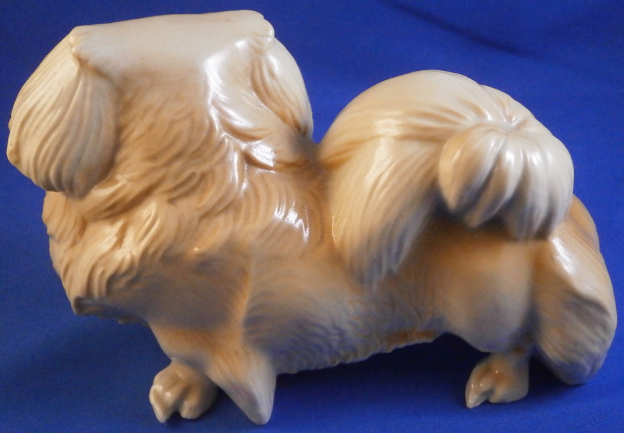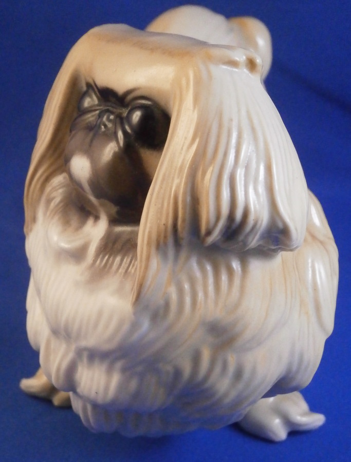 This is a cute figurine of a Pekinese dog made by Nymphenburg in the early 20th century. The figure is superbly modeled and hand painted. I think Nymphenburg makes the nicest animal figures in the porcelain world and this piece here is no exception. It's super cute and really fun to look at. The dog is 3.755 inches tall, 3 inches wide and 5.5 inches long so a nice size. It is marked with the impressed shield mark underneath with the number 650 over 8 underneath it. Also marked with the green shield mark with the word Nymphenburg under it plus the artist initials KS for Konrad Schmid. The figure is in perfect condition which is always a plus! Please email me for more information or other pictures.