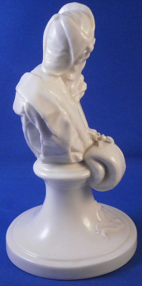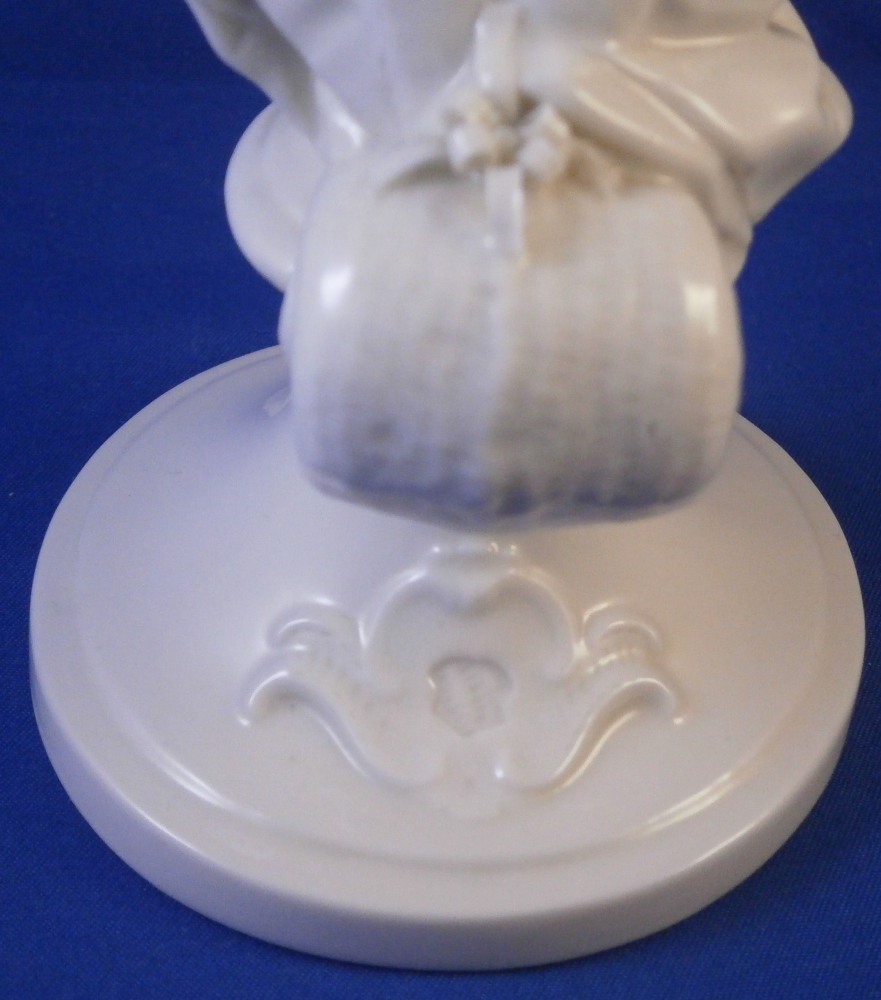 This is a nice bust / figurine made by Nymphenburg in the mid 20th century after originally being modeled by Franz Anton Bustelli in 1760. I have the original period piece as well on the site so it is a rare opportunity to compare these pieces! The bust is part of the four seasons set so I now need to find the other three :) The figure is of an old man dressed warmly with a muff in front of him. Long beard and a nice hat all on a fairly simple base with a nice design to the front including the shield mark in the center. The modelling by Bustelli is unbeatable! The figure is also marked with an impressed shield to the underside as well as the numbers 379 over 0 and Western Germany in green though part of that has rubbed off. The piece is about 5.25 inches tall with the base having a diameter of 3 inches. The figurine is in perfect condition even the little bow on top of the muff has no issues! Please email me for more information or other pictures.