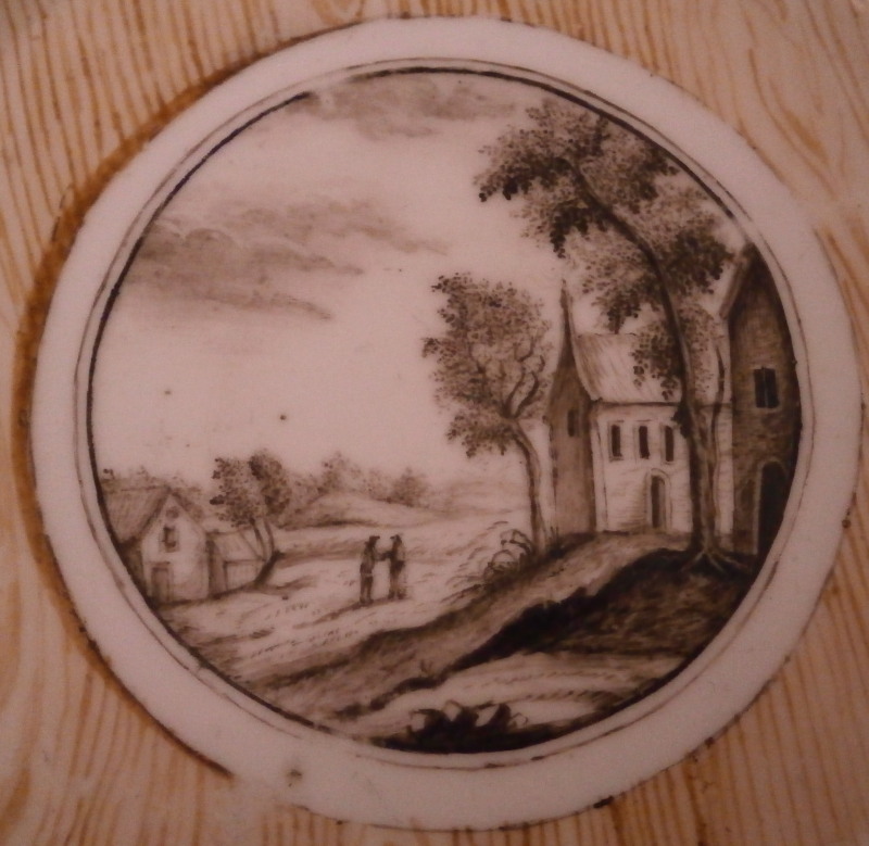 This is a superb saucer made by Nymphenburg in the 18th century. It is hand painted with a wood grain design all around and a round scene in black in the center as wel as a nice design along the rim. Gold trim to the edge. This type of design was not used very often and only very few makers used it (i.e. Niderviller, Doccia, Royal Vienna and Nymphenburg). It is marked with the impressed shield mark as well as an impressed circle. The saucer is in superb condition with heavy wear to the gold trim on the edge and some wear in general but it display superbly as shown. The saucer is 1 inches tall and 5.5 inches in diameter. Please email me for more information or other pictures.