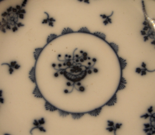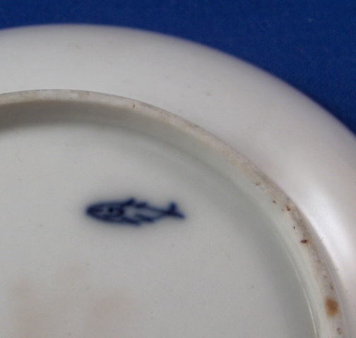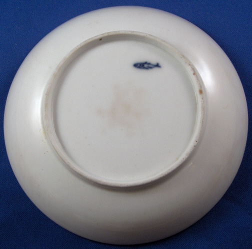 This is a saucer made by Nyon around 1780. It is nicely handpainted with a blue & white design that is really quite nice. It is marked underneath with the underglaze blue fish mark. The saucer is in perfect condition. It is 1.125 inches tall and 5.25 inches in diameter. Please email me for more information or other pictures.
