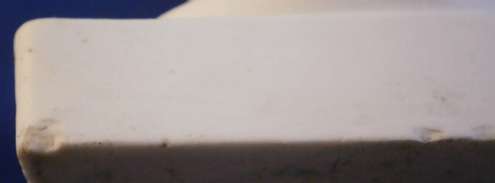 This is a really nice and rare figurine made by Orléans in about 1770. In 1757 Charles-Claude Guerault-D’Araubert became the owner of the factory, until his death in 1782 when the factory was closed. When I bought it I thought it might have been made by Mennecy but originally this bust as well as its counterpart of Voltaire were said to have been made by Tournai in Belgium until a researcher published a paper fairly recently on just those two pieces and identified them as having been made by the factory at Orleans. As early as in their lifetime, the two greatest minds of the Age of Enlightenment, Voltaire and Rousseau were represented in different materials such as in bronze, alabaster and biscuit porcelain which is the case here. Here we have the philosopher Rousseau modeled as a bust and placed on a removeable base. Made of biscuit or unglazed porcelain it shows off all that amazing detail of the modeling perfectly. No glaze to obscure them and no paint to hide flaws. It was more prized than painted pieces during this period. The base has a gadrooned design to it on a square base with a peg in the center that fits into the hole in the bottom of the bust. He is amazingly modeled wearing a nice top and lots of detail to his face and hair. The piece is unmarked which is very common on pieces from this period and explains why it had been wrongly attributed. Hard to do somtimes! The piece is in superb condition with the peg on top of the base having been cleanly broken off and reglued and an area to the top of the pedestal that has nibbles to it as shown. Some small minor firing flaws and nibbles to the bottom edge of the base but all in all in amazing condition. The other example I found of this had a flower to the left shoulder which is not present here nor does it look like it ever was. The figurine is 8.875 inches tall, 4.5 inches wide and 3.5 inches deep. A must have piece especially since the products of this maker are very rare and nicely made. Please email me for more information or other pictures.