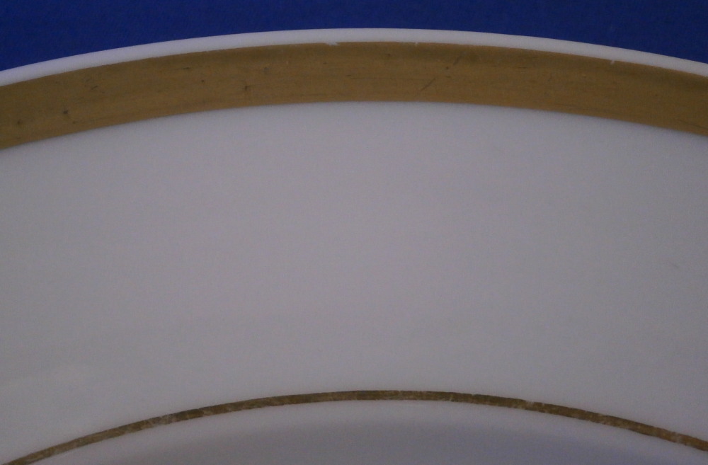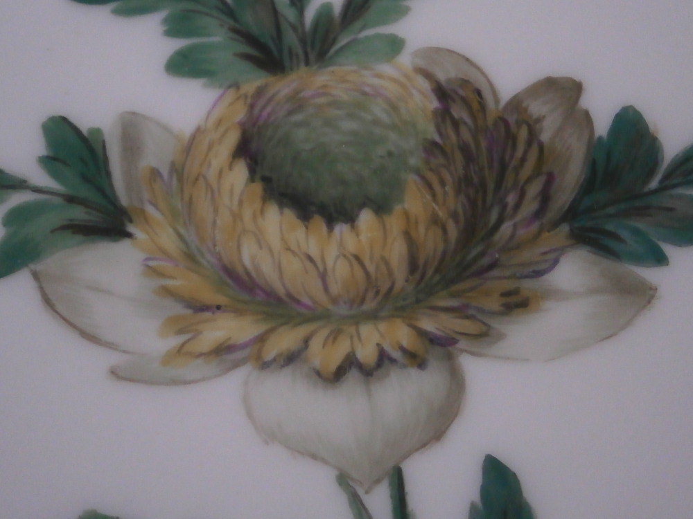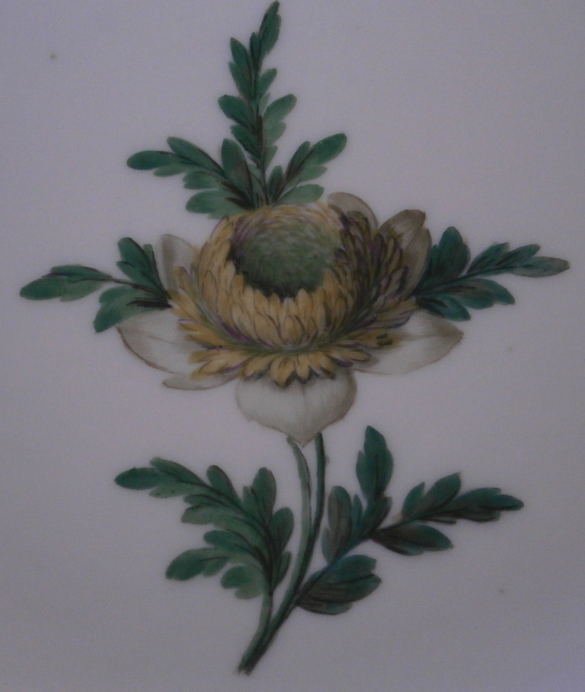 This is a nice plate made by one of the Paris region makers around 1800. The center has a nicely hand painted polychrome flower to it - not entirely sure what kind but it could eb an Anemone with a white and yellow blossom and its green elaves. Nice gold trim around the well and a thicker one around the rim. The plate is in great condition with a bit of minor wear to the gilding but it displays nicely! The plate is unmarked underneath except for an incised mark as shown which is normal for this region and period. The plate is definitely is from this region of France and around this time period. It is 1.25 inches tall and 8.625 inches in diameter. Please email me for more information or other pictures.