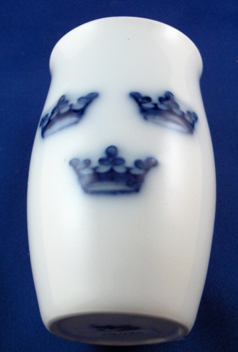 This is a vase made by Roerstrand in 1897. It commemorates King Oscar II's 25 year anniversary as ruler of Sweden. Handpainted in underglaze blue on a relief design with the year marks 1872-1897 with his cypher underneath. Three blue crowns painted on relief on the backside of the vase. It is in perfect condition and 4.5 inches tall by 3 inches in diameter. Marked underneath with the underglaze blue Roerstrands name mark with three crowns - two above and one below. A bit blurry but it's there. Please email me for more information or other pictures.