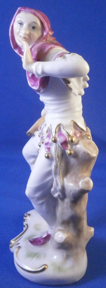 This is a fun porcelain figurine made by Rosenthal in the 20th century - 1955 to be exact. A hard to find example by a great maker. The figure is of a Harlequin / Jester / Clown and was originally designed by Richard Förster who is quite famous among their modelers. A fun figurine that is well modeled with lots of playful details and hand painted nicely. The piece is in great condition but the front part of the stick he is holding in his right hand is broken off. A very common issue with the model. It is marked underneath with the green Rosenthale mark with Selb-Plössberg under it as well as Germany with a dot to either side. Impressed number 162 and R. Förster impressed on the back of the base as shown. The figurine is 5.5 inches tall, 2.75 inches wide and 1.75 inches deep. Please email me for more information or photos.