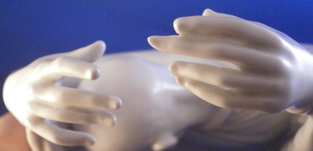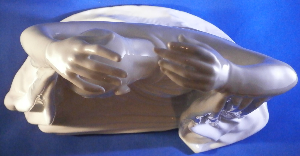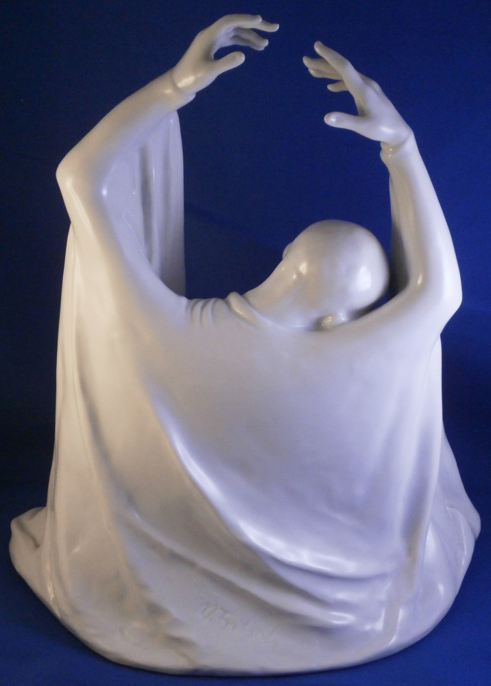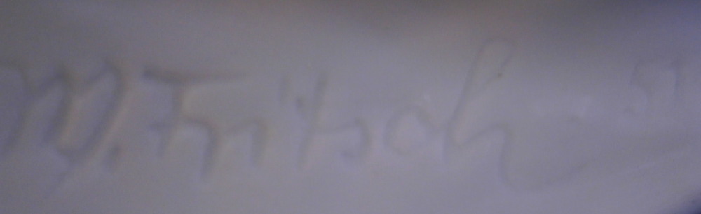 This is a really superb figurine made by Rosenthal during the mid 20th century - in 1957 if I read the date code correctly. It is one of those figures that just speaks to you - hard to describe but it is an amazingly modeled piece with lots of movement and detail. One of my all time favorite peices. The figure is of the angel Lucifer (Der Engel Luzifer ) first modeled by Waldemar Fritsch in 1951 which depicts the dancer Harald Kreutzberg in the dance "Night Song" dancing to the music of Johannes Brahms . Absolutely stunning piece and in perfect condition which never hurts :) Often the fingers have damage on these pieces so it's nice to find one without any issues! The piece has the modeleur's name W. Fritsch as well as the year 51 incised into the back of the base and the green Rosenthal mark underneath as well as the model number 1864 and another impressed number as shown. The entire base was covered with this felt stuff so I opened up the area of the mark only and left the rest. The figurine is 11.5 inches tall, 9.875 inches wide and 5.5 inches deep. Please email me for more information or photos.
