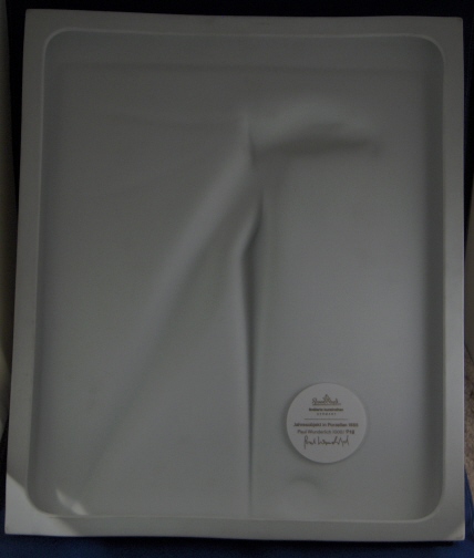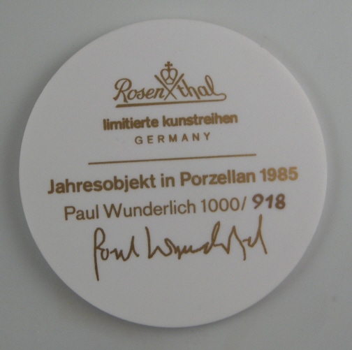 This is a fun porcelain plaque made by Rosenthal in 1985. It was designed by the famous Paul Wunderlich and is a limited edition of 1000. This is a fun be it a bit weird piece but it looks amazing on my wall next to his other piece - the Wolf mask. This piece is an abstract design of the egyptian god Horus showing just his head with two rounded stilts. Nice rim relief design on the sides and a different one on top as shown. On the bottom a raised circle that has Paul Wunderlich's signature in it as well as the year 1985. The back has the Rosenthal mark as well as the limited edition information, etc. on it. The piece is in perfect condition! It is about 16 inches tall, 13.75 inches wide and 1.125 inches deep. Please email me for more information or photos.