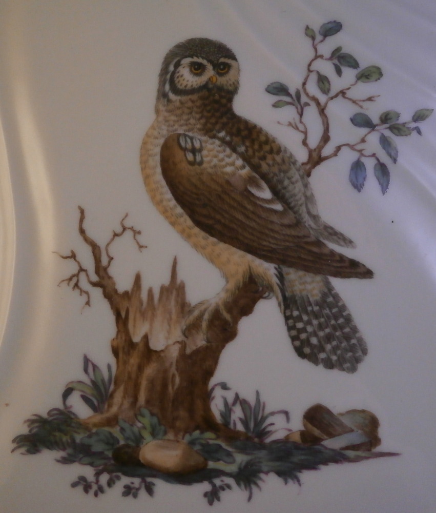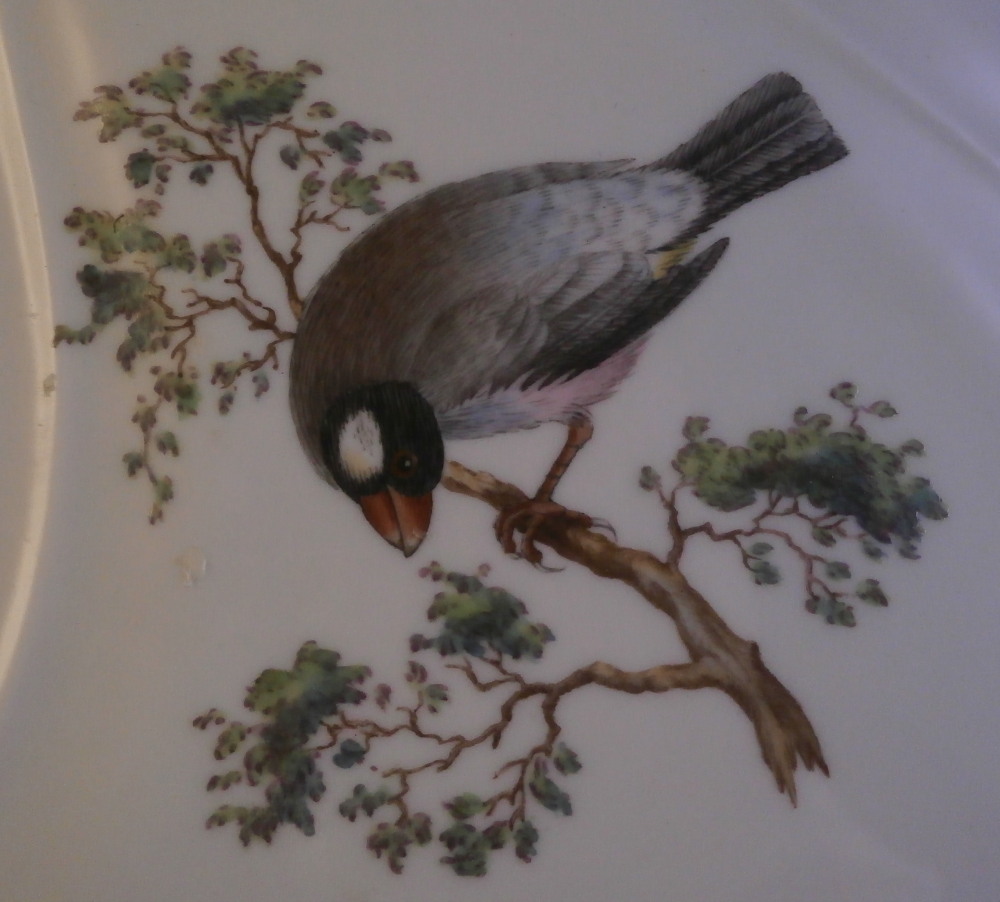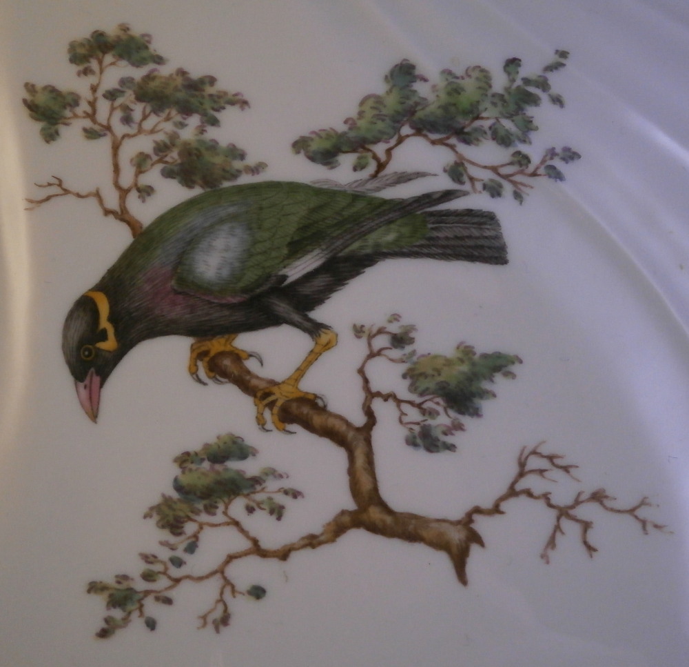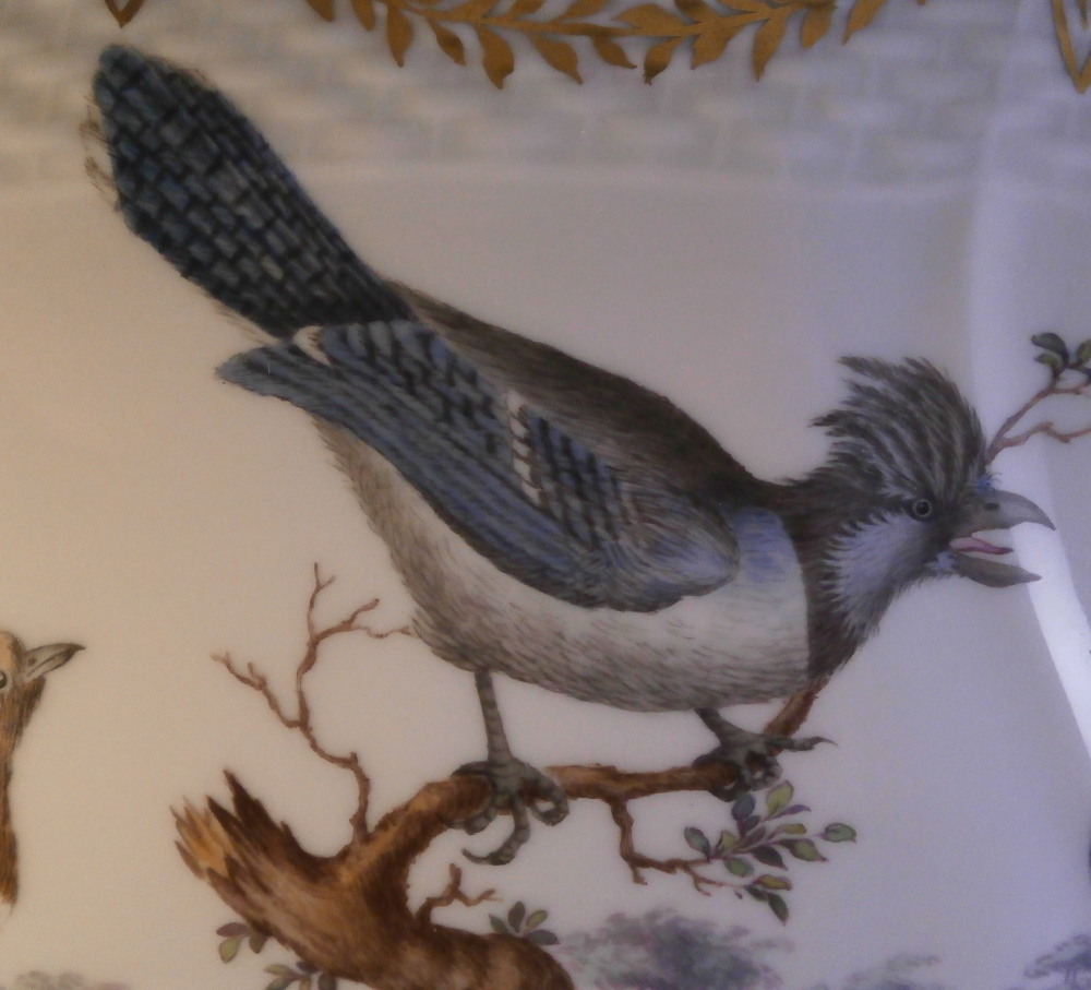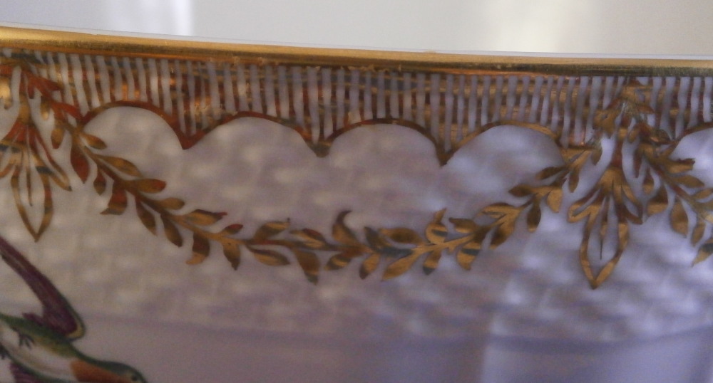 This is an amazing tureen made by Royal Copenhagen in the mid 20th century. Marked with the Julian Marie mark for using 18th century originals. I have never seen this design redone and it is on a huge piece! The tureen is round in shape and larger than any other I have ever owned. The edges have a basketweave design to the paste with a gold trim over that and another gold design along the foot of the bottom piece. The best part however are all those amazing hand painted bird scenes. The lid has four birds sitting on a branch with two of the scenes having a bird of a landscape to them. The superb finial is in the shape of a lemon with its stem and two leaves. The bottom piece has two large bird scenes in a landscape aurrounding as well as two single bird scenes to it. The larger scenes are amazing and have three birds in them. It does not come any better than this piece! The lid has a slot to fit a spoon handle as shown. Both pieces are marked with the three wavy blue lines mark in under glaze blue as well as the crown and Denmark with a line over the N. Also artist initials as well as the number 4065 and 1793 which is probably the year the design was originally made. The terrine is 11.5 inches tall including the lemon finial and 12.5 inches in diameter. This piece is incredible and it does not come better than this by this maker from this period. Please email me for more information or other pictures.