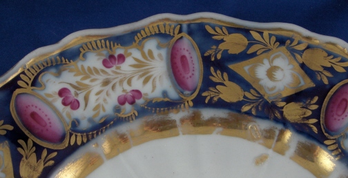 This is a porcelain plate made by the Safronow factory around 1820. It is handpainted in underglaze blue with puce jewels and flowers and a gold design on top. Quite decorative and very typical of this factory. The plate is in great condition with some wear to the gilding mostly around the center well and rim edge which can be expected from a plate that was made to be used. It is marked with an underglaze dark blue or black C looking mark used by Safronow from 1815 until 1840. The plate is 1.5 inches tall and 9 inches in diameter. Please email me for more information or other pictures.