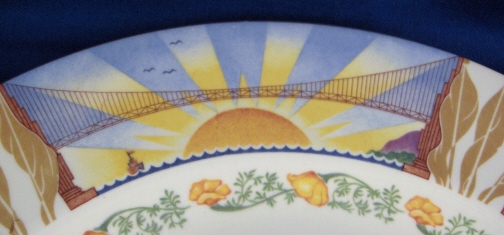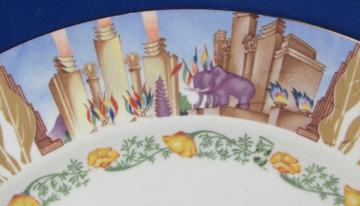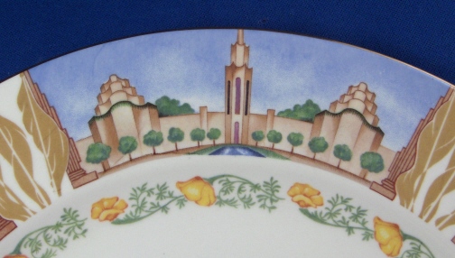 This is a neat plate made by Homer Laughlin in 1939. It has a superb Art Deco design for the International Exposition in San Francisco in 1939 on it. It was a souvenir item back then and is one of the nicest plates from the Expo if not the nicest! The plate is marked with all this info in greenish writing in a circle on the back The plate is in great condition with very little wear. It is 0.75 inches tall and has a diameter of 10.125 inches. Please email me for more information or other pictures.