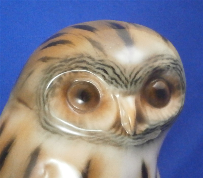 This is a figurine of an owl made by the Schwarzburger Werkstaetten in the early 20th century when it was first designed. That means it is one of the rare original pieces and not a later copy! The bird is superbly modeled and handpainted in very naturalistic colors and looks almost real. Quite the cute little piece! It helps that is is in perfect condition with an indent on the bottom base edge from the making. The figurine is 4 inches tall, 3.125 inches wide and about 5 inches long. The owl is marked with the impressed fox mark as well as the impressed stamp stating Schwarzburger Werkstaetten fuer Porzellankunst and the model number U1249. The top of the base has the artist name impressed into it though it is hard to make out. Please email me for more information or other pictures.
