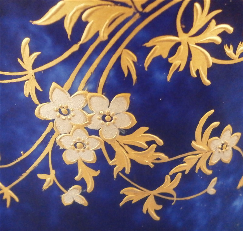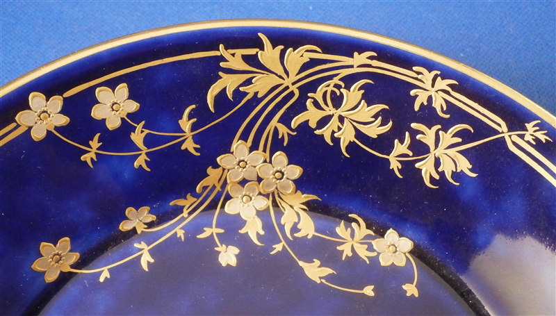 Mottled Blue Ground Gold & Platinum Flowers Service for 4