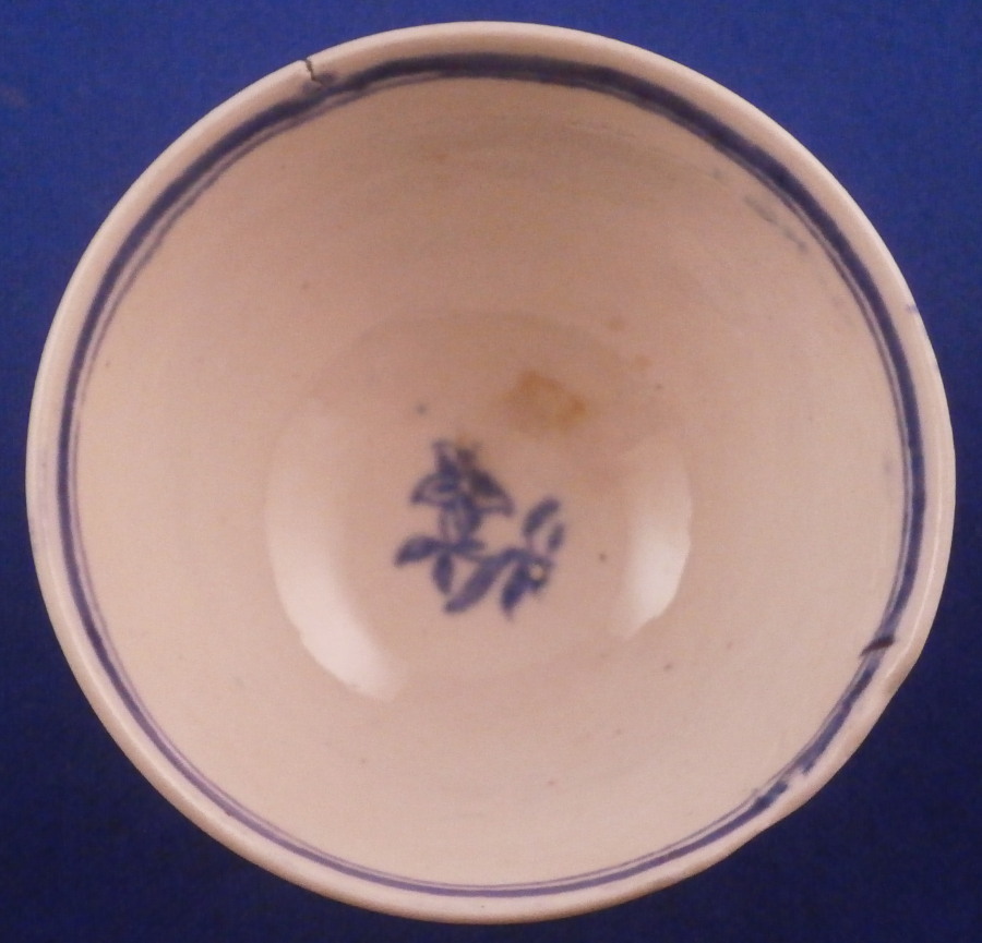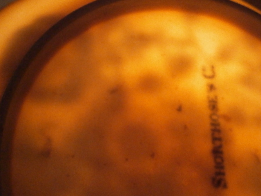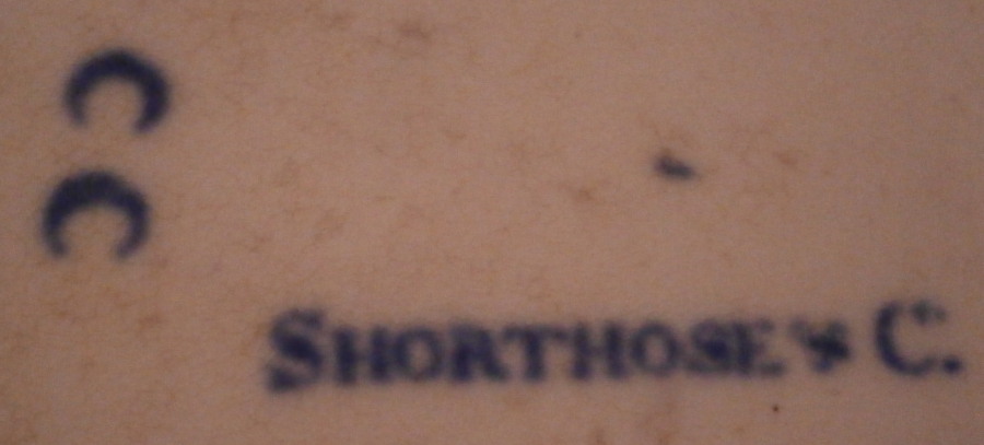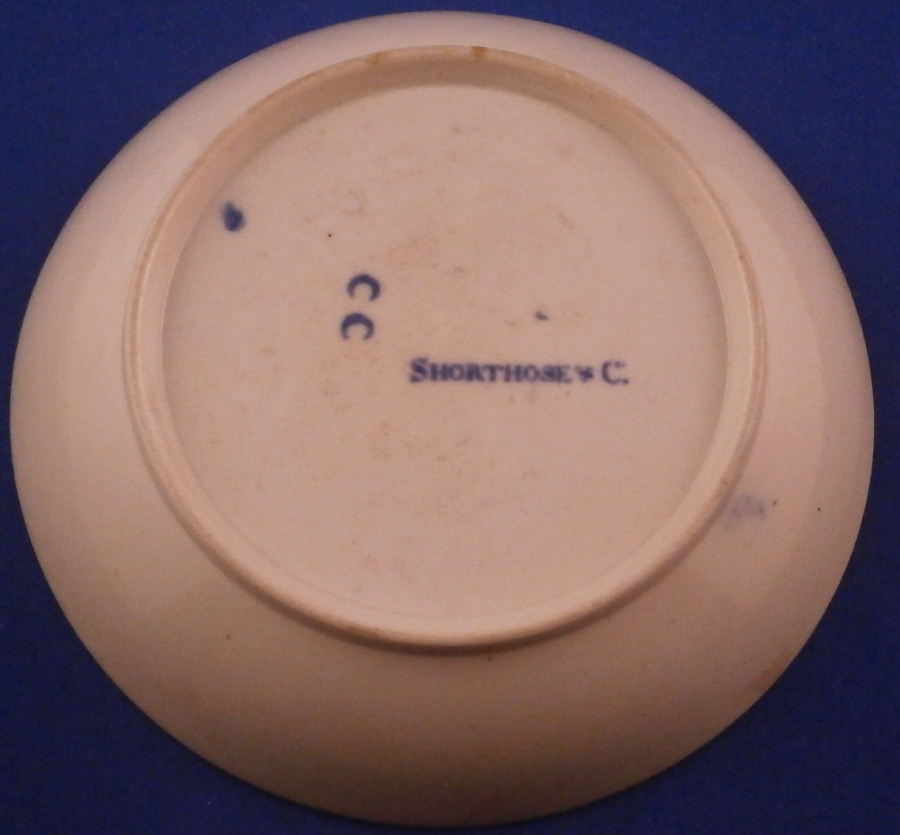 This is an interesting cup and saucer set made by Shorthose in England in the early 19th century. John Shorthose was a manufacturer of earthenware in Hanley , Staffordhsire and this piece here is copied from the Worcester Three Flowers pattern and even has the blue crescent mark underneath. It is very unusual in that it does have a straw colored translucency and almost seems like they were experimenting to make some sort pf porcelain. There is a similar piece in the V&A museum and they date it possibly a touch earlier. The set is decorated in blue and the saucer is in really nice condition. The color of the paste has a slight straw color to it not pure white. The teabowl shaped cup a small firing crack to the edge on one side and a firing flow to the edge on the other side where it looks like it melted. Never seen anything like it before. A small firing flaw to the outside wall as well. Otherwise the set is in great condition. a stain to the bottom isnide of the cup. The cup is unmakred while the saucer has Shorthose & C in blue underneath as well as the blue crescent mark as shown. The saucer is just over 1 inch tall and 4.75 inches in diameter. The teabowl is 1.5 inches tall and 2.75 inches in diameter. Please email me for more information or other pictures.