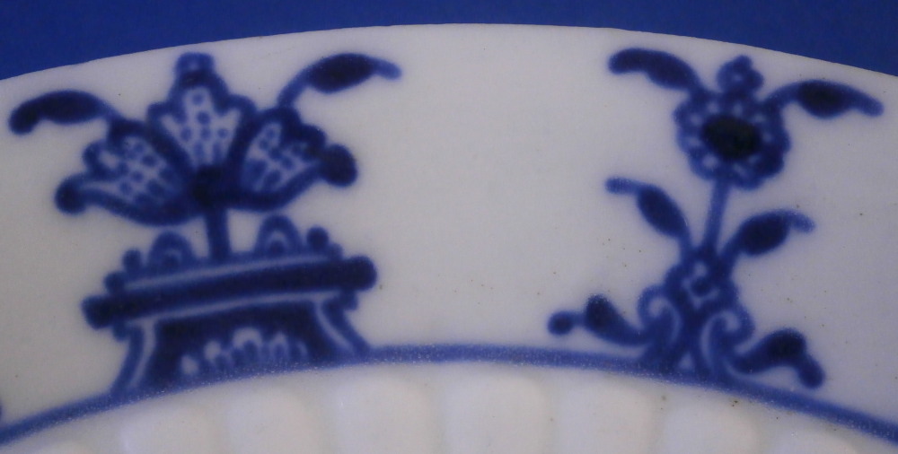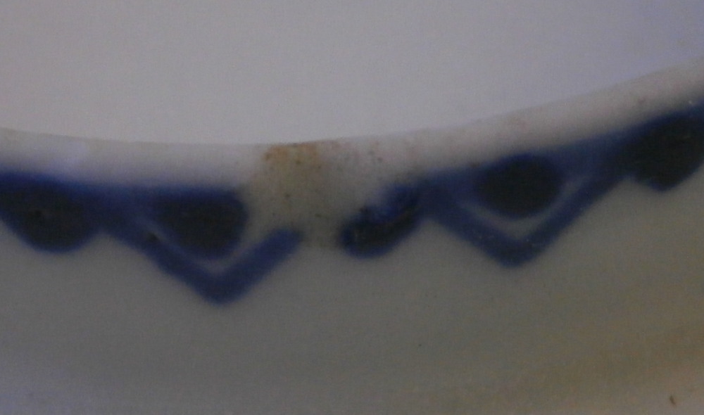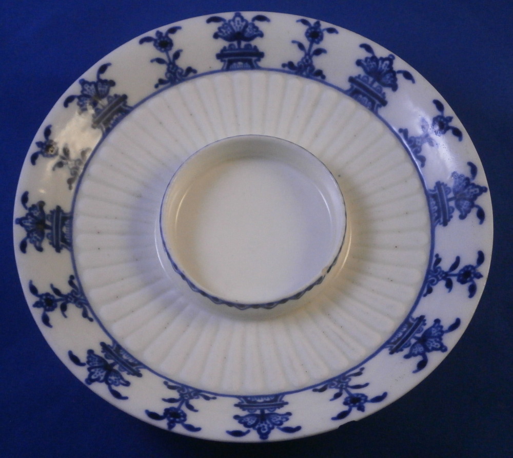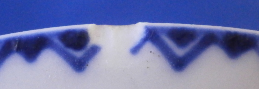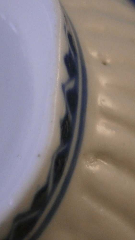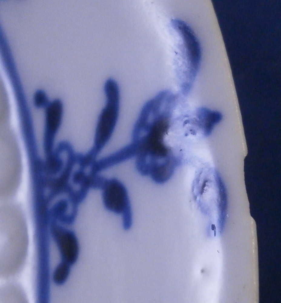 This is a superb cup and saucer made by St-Cloud during the first quarter of the 18th century. It is made of a creamy colored soft paste with a Renaissance inspired lambrequin design in under glaze blue loosely derived from the broderie ornaments of the designer Jean Berain (1640-1711) and his followers. Really quite nice! Softpaste porcelain has a charm to it unlike any other porcelain and is a must have for any collector! The cup and saucer have a ribbed design to the paste in a section below the blue decoration and the saucer has a little rim around the center well to keep the cup from moving around much like a trembleuse saucer. A nice addition that is a bit unsual is the blue floral design to the cup inside as shown. Seems to have only been done on this cup shape which is rare. This is a handleless cup aka a tea bowl. The set is in great condition with a small chips to the trembleuse ring of the saucer and to the underside edge as shown from both views! The saucer is unmarked with the cup have an number 9 with a line below it as shown. The cup is 2.125 inches tall and 3.25 inches in diameter. The saucer is 1.25 inches tall and 5.625 inches in diameter. Please email me for more information or other pictures.