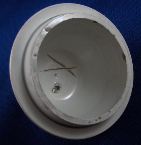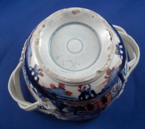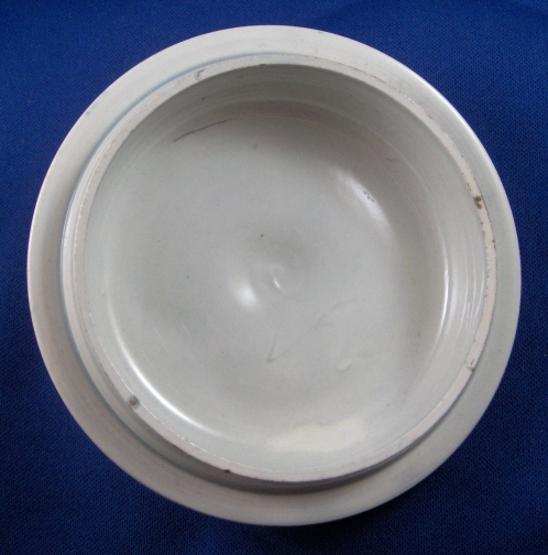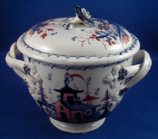 4) Sugar dish - two small chips to rim of main part and an unimportant small one to bottom of footring. It is 4 inches tall.