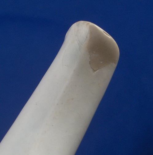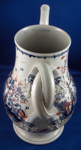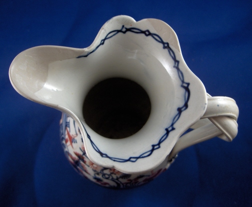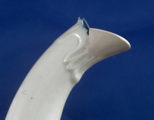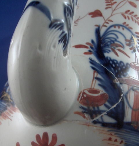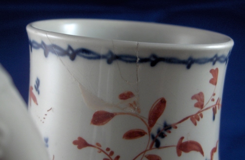 3) Creamer - two repaired sections on top rim and a small chip to handle. It is 5.5 inches tall.