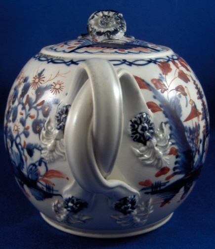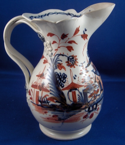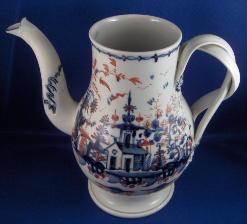 This is super tea and coffee set probably made by Leeds of the Staffordshire region around 1780. It is made of Pearlware and has the typical bluish glaze where it pooled. All pieces are handpainted with a red, blue and gold design all around. It is not easy to find a set like this anymore! All pieces have wear to the gilding which would be expected with something this old. There are also a number of restorations that are very well done but were never glazed nor colored. Sort of like Museum restorations but better. There are the following pieces: