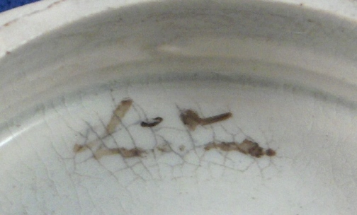 The wastebowl is marked with an underglaze number 3, the inside coffee pot lid has an incised X, the incised sugar pot lid has an incised Z and the inside teapot lid has a signature in black I cannot make out. Please email me for more information or other pictures.