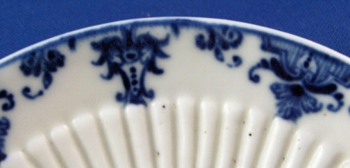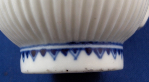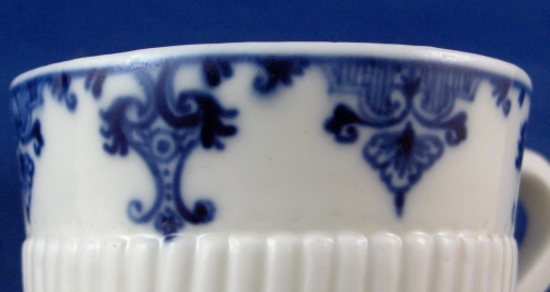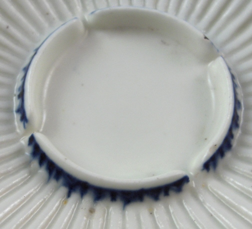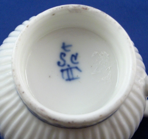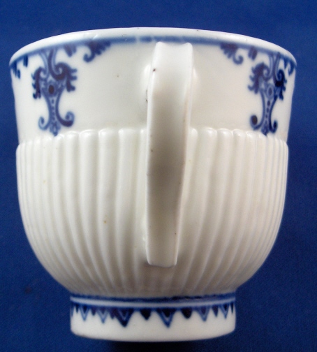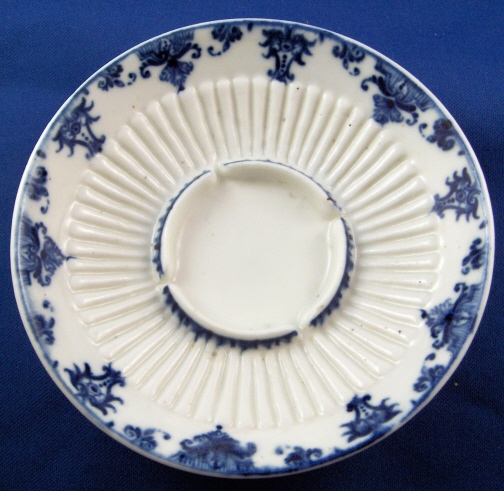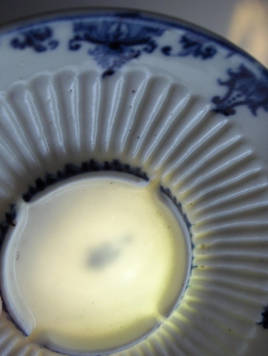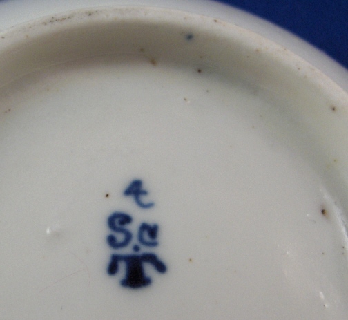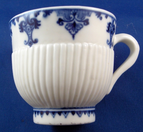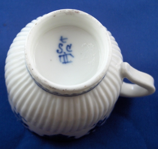 This is a cup and saucer made by St-Cloud during the first quarter of the 18th century. It is made of a creamy colored softpaste with an underglaze blue decoration that is quite nice. This is a handled cup like one would use for coffee these days. The decorations on both peices match which isn't always the case with their wares. The cup and saucer also have a ribbed design to them and the saucer has a little rim around the center well to keep the cup from moving around too much. I guess a type of trembleuse. The set is in amazing condition with just a few tiny and normal manufacturing flaws like a small firing crack where the handle and cup meet on one side and a few small firing black spots and lumps and bumps normal on these early pieces. Both the cup and the saucer are marked which is not common at all and a nice addition to this already exquisite set. The cup is 2.625 inches tall and 2.875 inches in diameter. The saucer is 1.25 inches tall and 4.625 inches in diameter. Please email me for more information or other pictures.