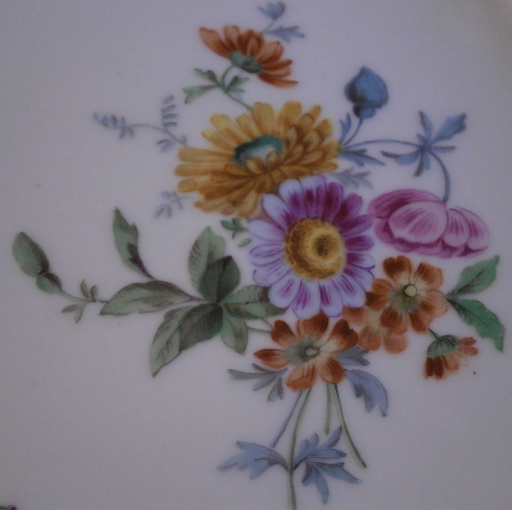 This is a porcelain plate made by the famous St. Petersburg factory during the reign of Czar Alexander II as Emperor of Russia who ruled from 1855 until 1881. Very reminiscent of the Royal Copenhagen Saxon Flowers design porcelain plates but here made by the Imperial factory and a little nicer if I may say so. The plate has a relief design to the rim with a nice gold trim to the edge. There are five single flowers hand painted along the rim with a superb large floral arrangement to the right side of the well and three more single flowers and a leaf design filling in the rest of the space. A really nice looking plate fit for royalty! The plate is in perfect condition! It is marked with the green A II mark under the crown with the Roman numeral VI under it as well as the typical green dots along the foot rim no one seems to really know what their meaning is and an impressed number 2 as shown. The plate is 1.5 inches tall and 9.875 inches in diameter. Please email me for more information or other pictures.