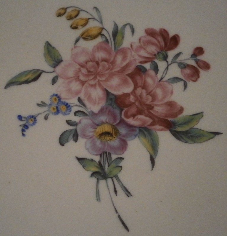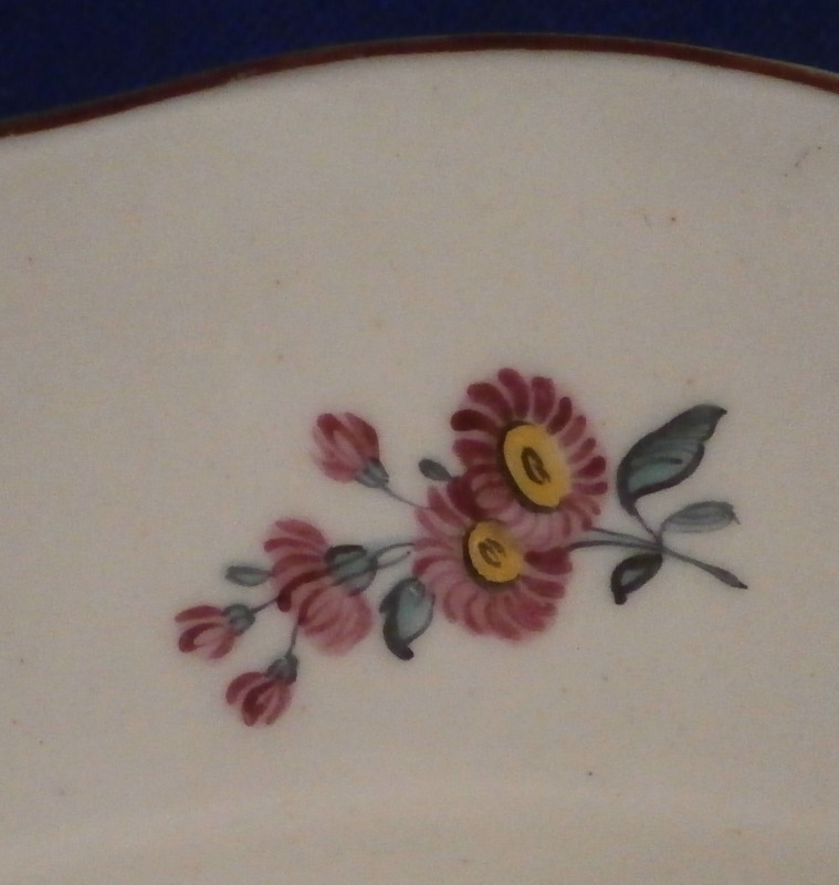 This is another superb plate made by Tournai in the 18th century. It is made of soft paste porcelain and hand painted with a nice polychrome floral arrangement in the center as well as four single flowers along the rim. Nicely shaped edge with a brown trim to the edge. I think Tournay flowers are among the very nicest of the porcelain world. They are amazing and the soft paste porcelain and its enamels are just perfect. Very hard to find. The plate is in good condition without any chip, repairs, etc but there are some use marks and wear to the plate though it displays very well. Wear to the glaze is quite normal to softpaste porcelain much more so than on hardpaste pieces. The piece is not marked underneath which is fairly normal on Tournay pieces of this period but has the typical green translucency and so called moons. The plate is 1.125 inches tall and 9.375 inches in diameter. Please email me for more information or other pictures.
