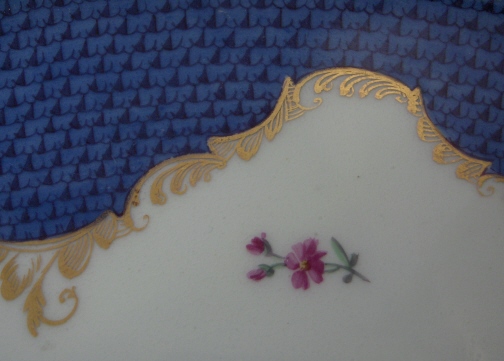 This is a large serving tray made by Royal Vienna in 1819 (could be 1814 - hard to read the last number!). It is handpainted with a great blue scale trim all around as well as a large floral arrangement in the center with small flowers all around it. Noce gold trim around center and edge. Quite the fancy tray! It is in great condition with just a touch of wear but amazing for the age for sure! The tray is 1.25 inches tall, 16.25 inches wide and 13.25 inches deep. It is marked with the impressed year code 819 (or possibly 814), an incised W, an impressed letter P and a faint 25. or 23. as a painters mark. No blue shield to be found but that is not uncommon on trays. Please email me for more information or photos.