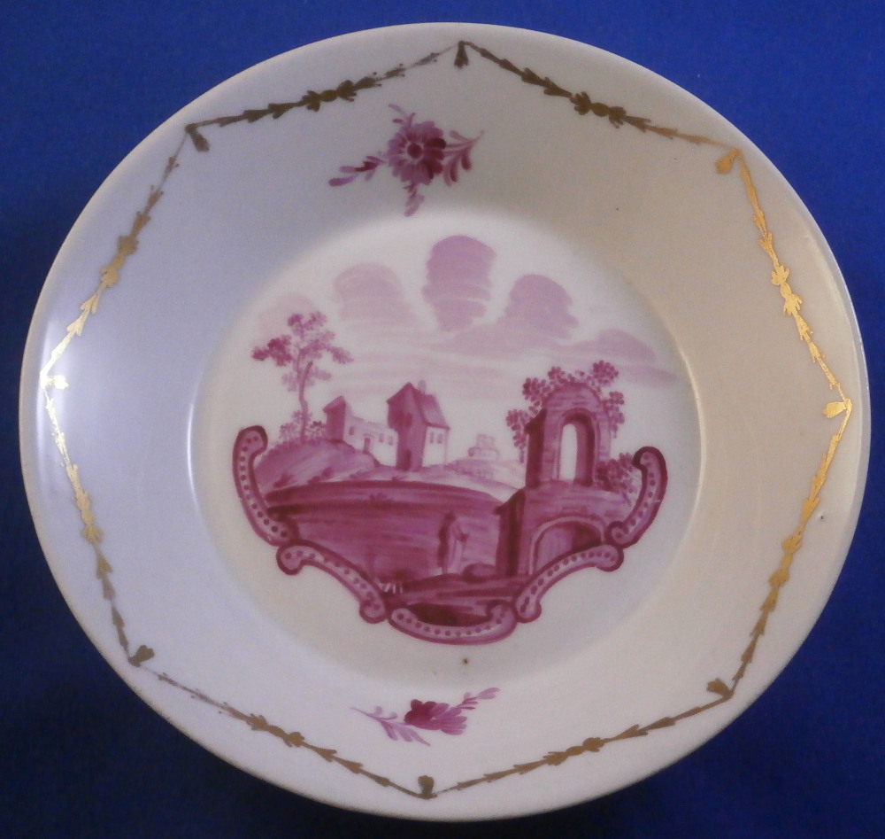 Wallendorf Puce Scenic Lidded Cup & Saucer