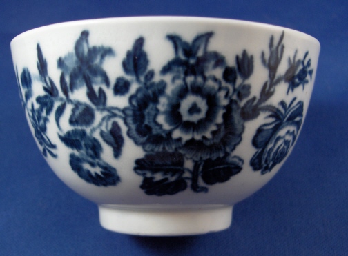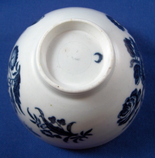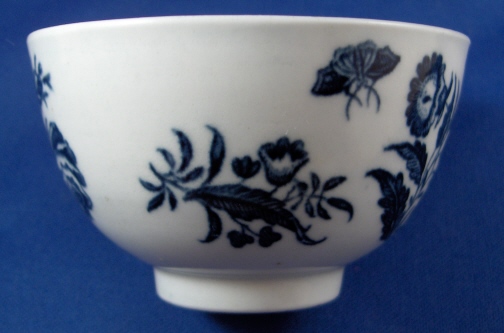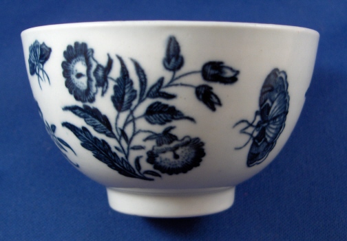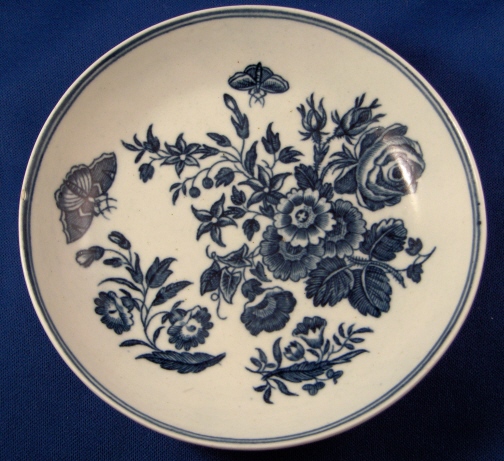 This is another cup and saucer made by Worcester in the 18th century. The set is decorated in underglaze blue in a floral pattern with butterflies. Both the cup and the saucer are in great condition with a small chip by the rim which seems to have been because of a firing flaw and is just a shallow pop out of the top layer. No big deal. Both are marked with the blue crescent mark underneath. The cup is 1.75 inches tall and 3 inches in diameter. The saucer is 1.125 inches tall and 5 inches in diameter. Please email me for more information or other pictures.
