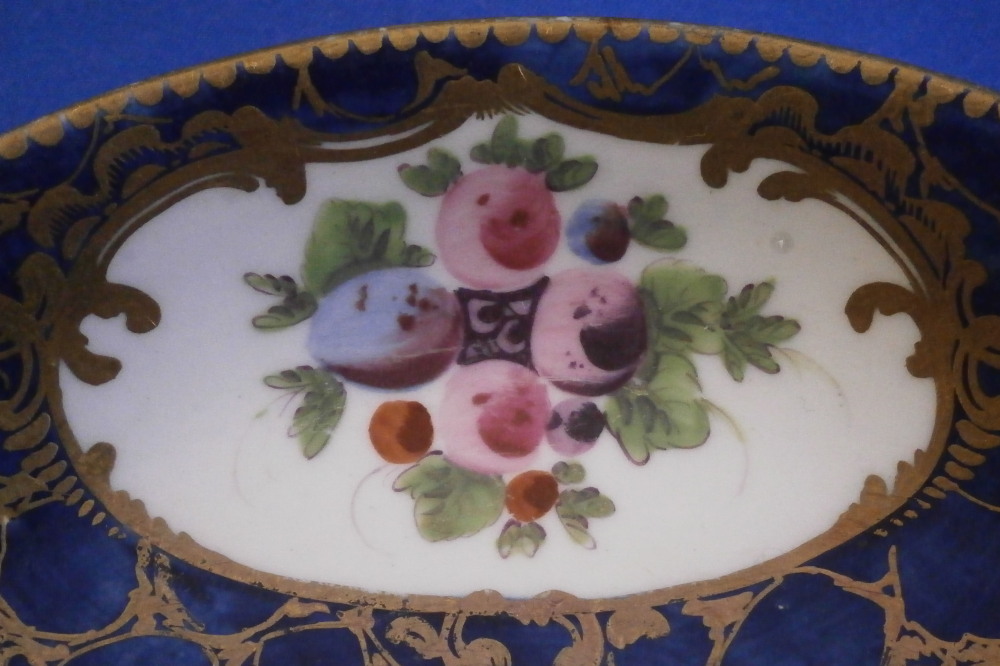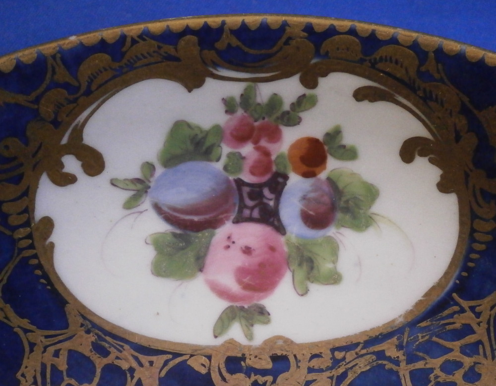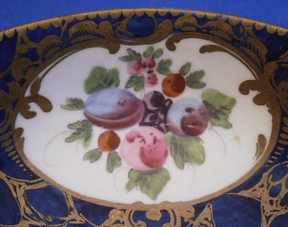 Blue Ground Fruit Design Cup & Saucer