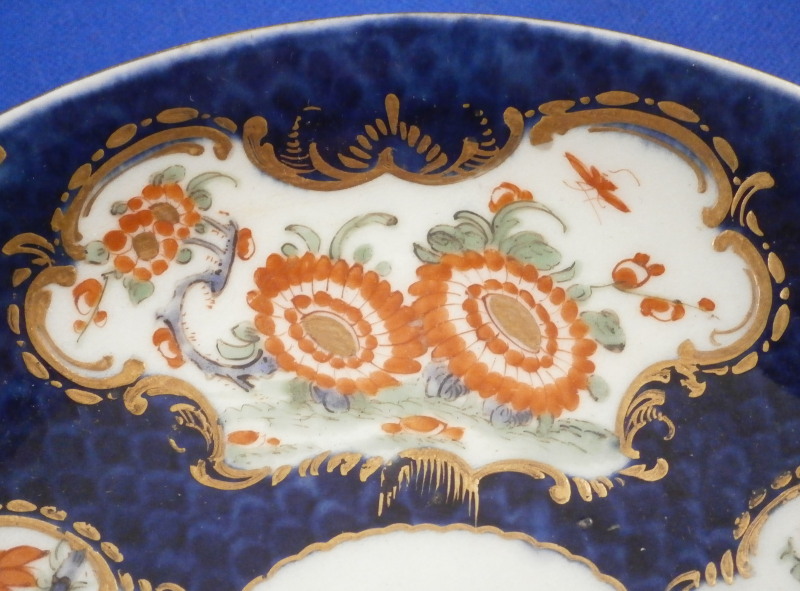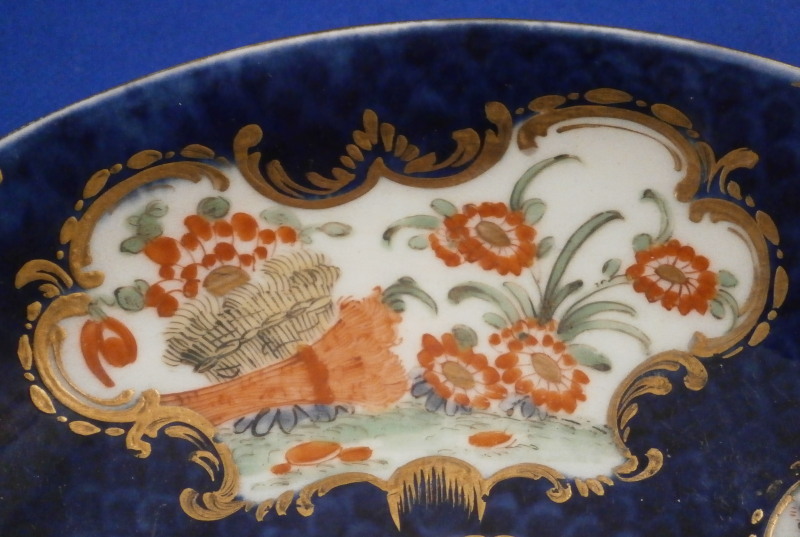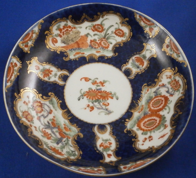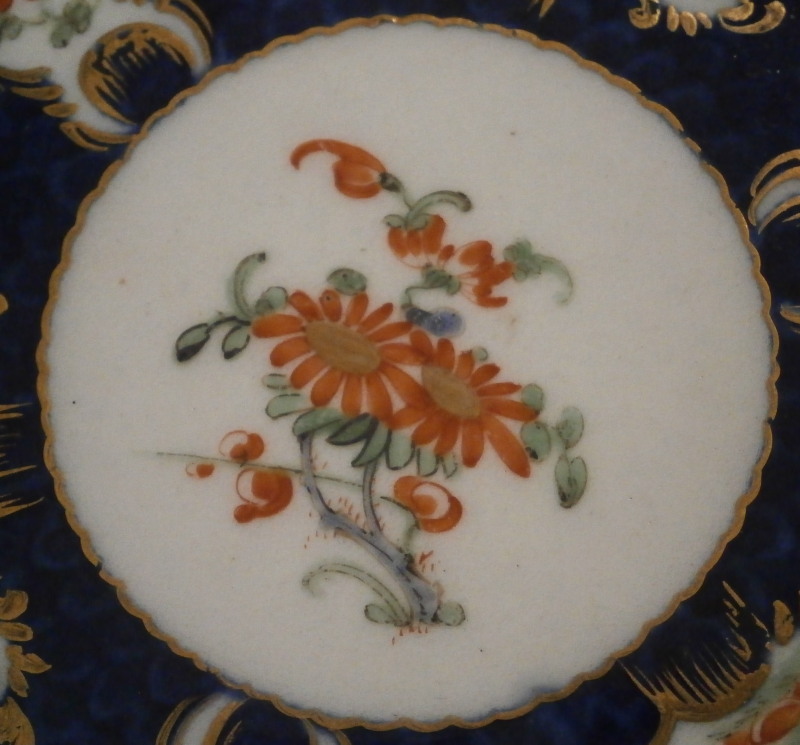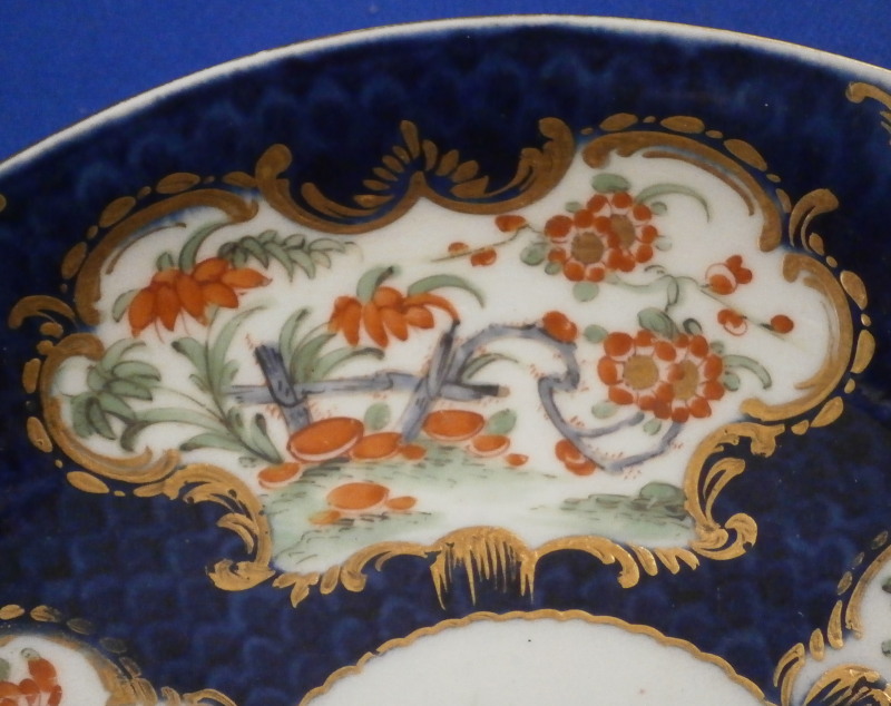 This is a superb early cup and saucer made by Worcester around 1760 during their first period. Both pieces are hand painted with three superb kakiemon floral scenes as well as lots and lots of single flowers surrounded by some very nice gilding. The quality of the painting is top notch and the area between the cartouches are filled with their famous blue scale design ground. An amazing set that is as good as it gets for them. The cup and saucer are both in perfect condition with some very very minor wear. The cup is 1.875 inches tall and has a diameter of just under 3 inches. The saucer is about 1 inch tall and has a diameter of 5.125 inches. Each piece is marked with their square fret mark underneath in under glaze blue as shown. Please email me for more information or other pictures.
