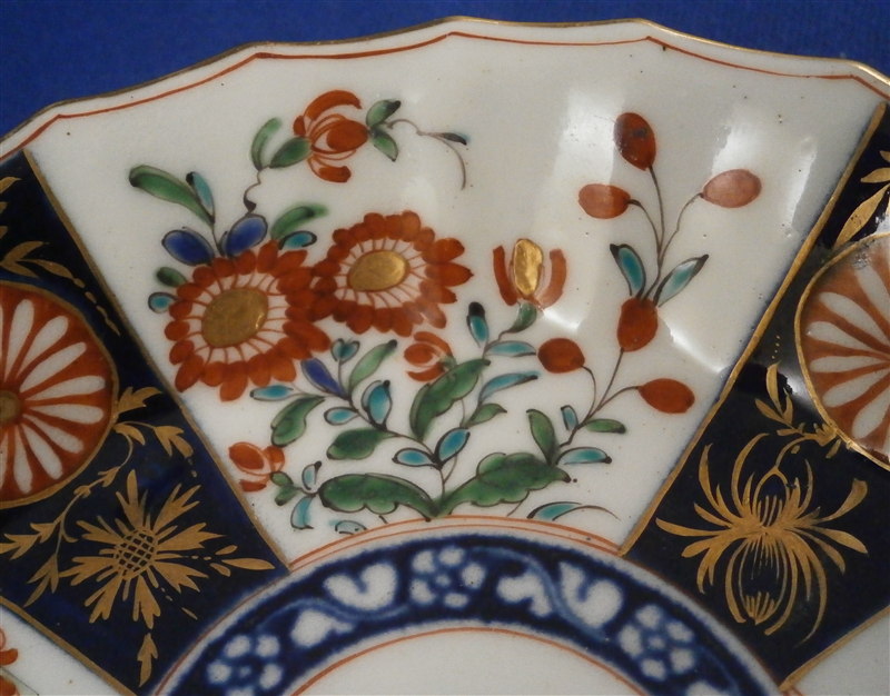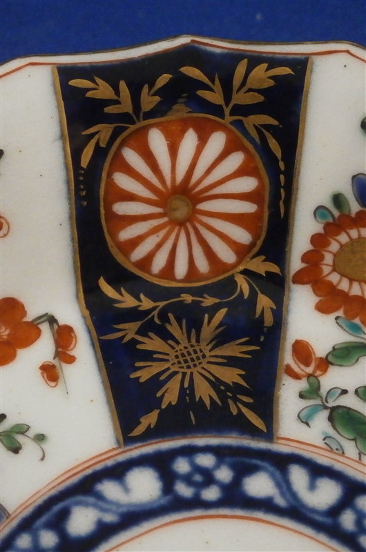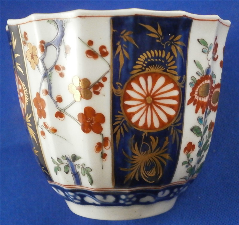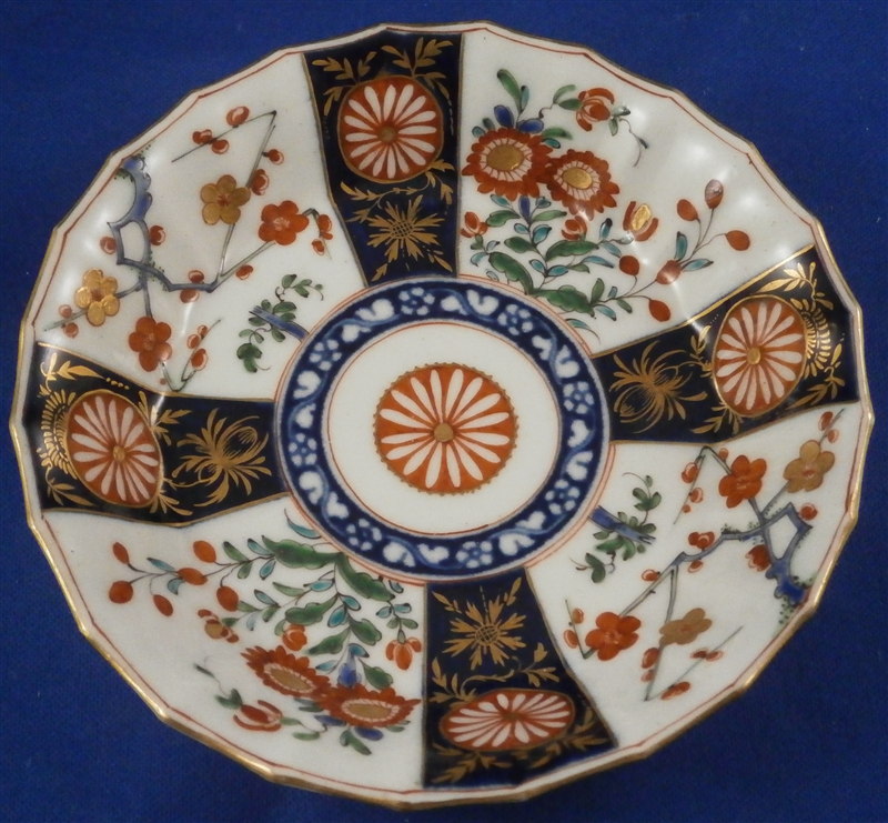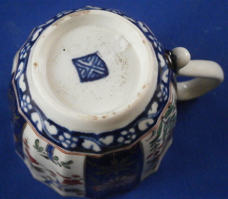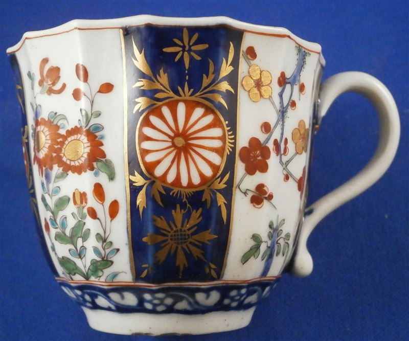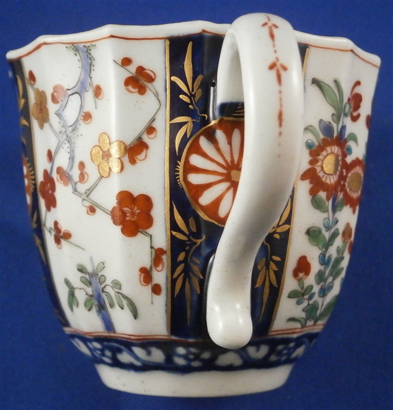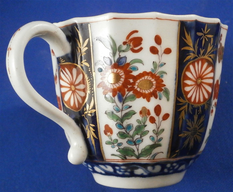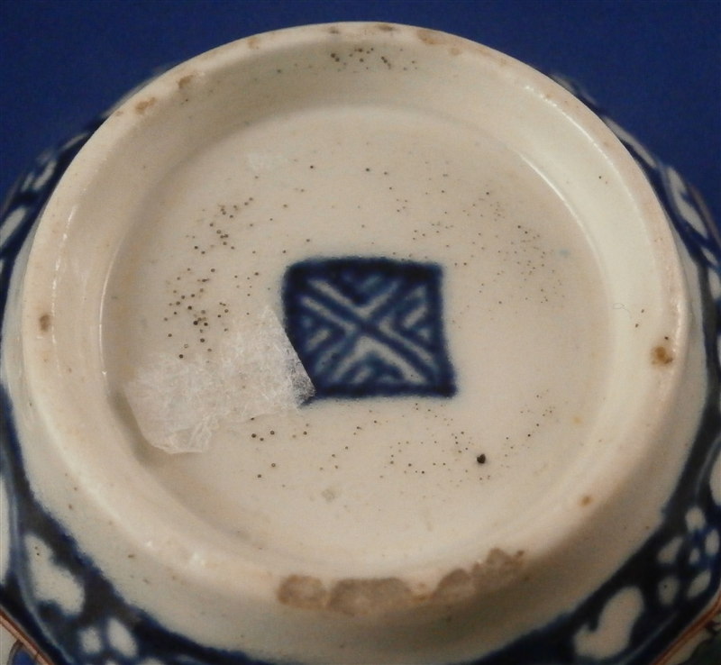 This is a superb cup and saucer made by Worcester around 1765. It is hand painted with a fun design that is a mixture between Kakiemon and Imari in alternating panels in superb colors and with lots of detail! The set is in the best condition anyone could hope for with a rough area to the foot ring of the cup but this is from the making. The colors are strong, the gilding has almost no wear at all and the design and shape is top notch :) I especially like the shape! The set is marked with their early fret mark meant to imitate a Chinese seal mark. The cup is 2.25 inches tall and has a diameter of 2.625 inches. The saucer is 1 inch tall and has a diameter of 4.625 inches. Please email me for more information or other pictures.