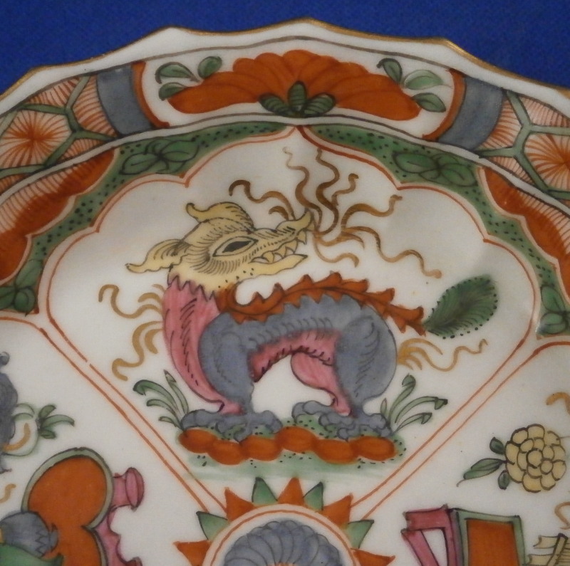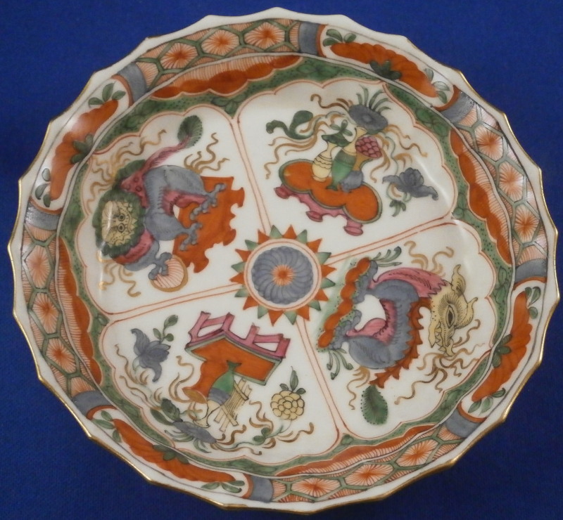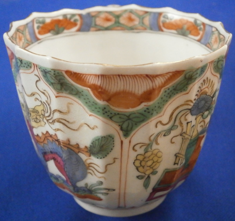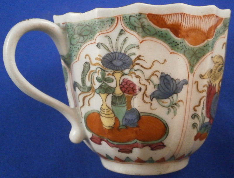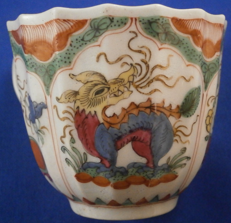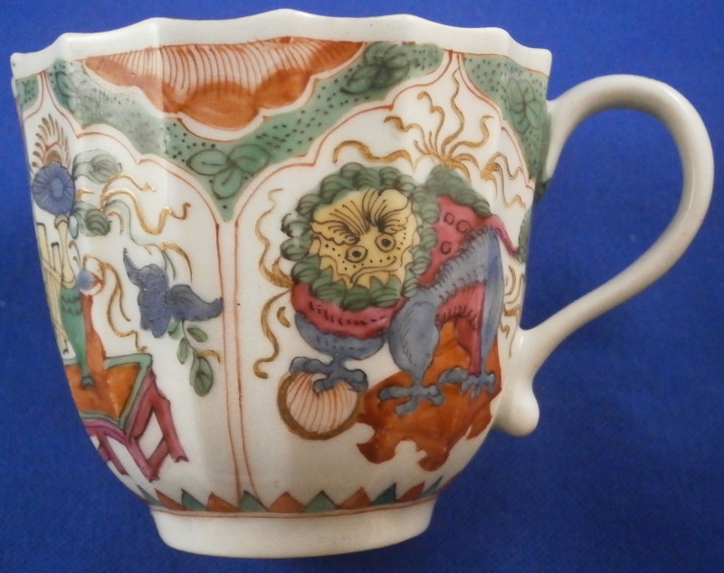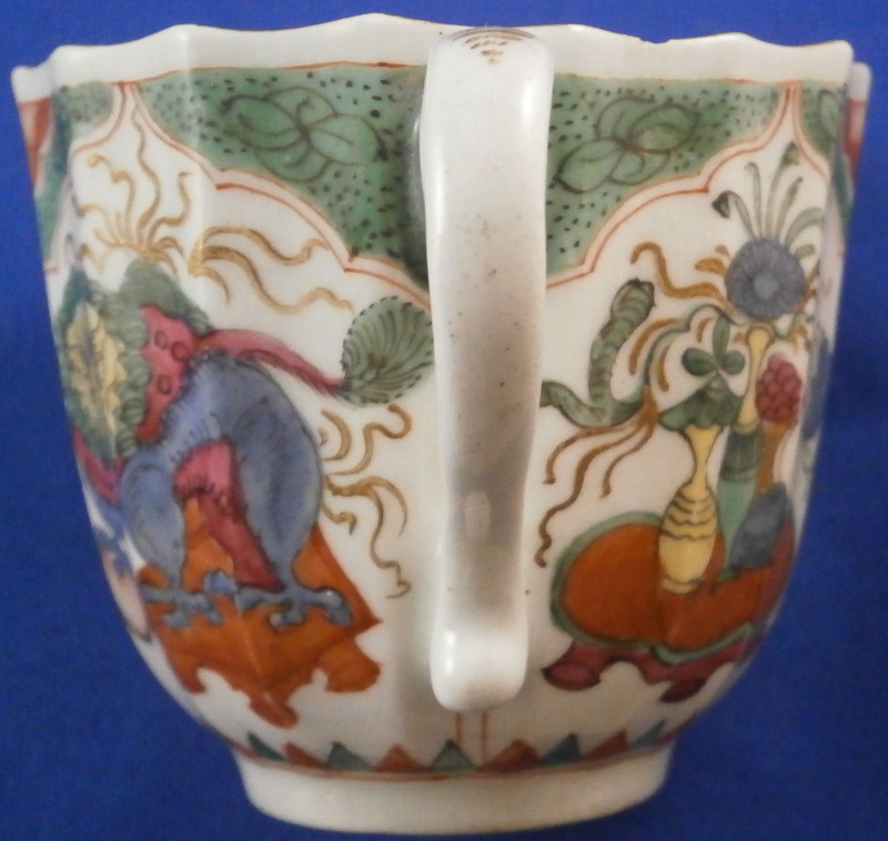 This is a superb coffee can cup and saucer made by Worcester during their first period around 1765. It is hand painted with the Dragon in Compartments or Kylin pattern in superb colors and with lots of detail! A nice early example that is so thinly potted with some amazing colors! This pattern is definitely a favorite of mine! The set is in great condition with the saucer almost perfect except for a bit of gold wear to the very edge and the cup has the same edge wear and a small flake off the edge near the handle as shown. They display perfectly! The colors are strong and the design and shape is top notch :) The set is marked with their early under glaze blue hatch mark underneath. The cup is 2.25 inches tall and has a diameter of 2.5 inches. The saucer is 1 inch tall and has a diameter of 4.75 inches. Please email me for more information or other pictures.