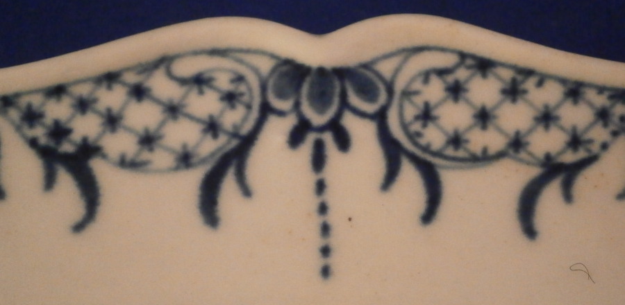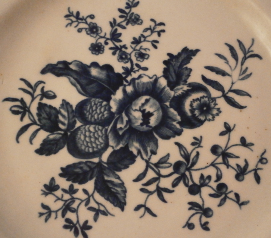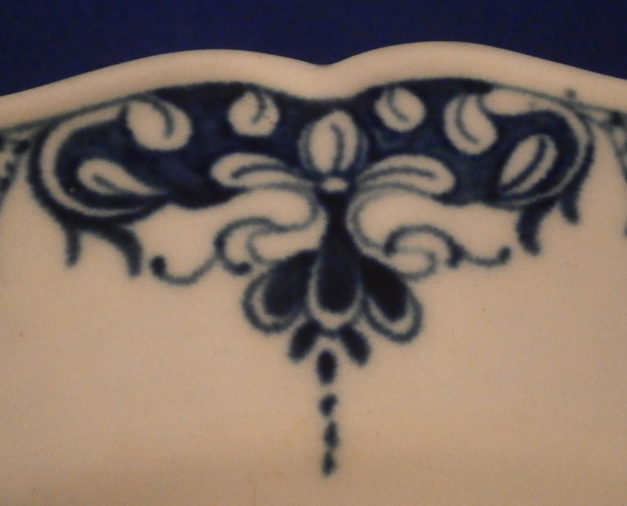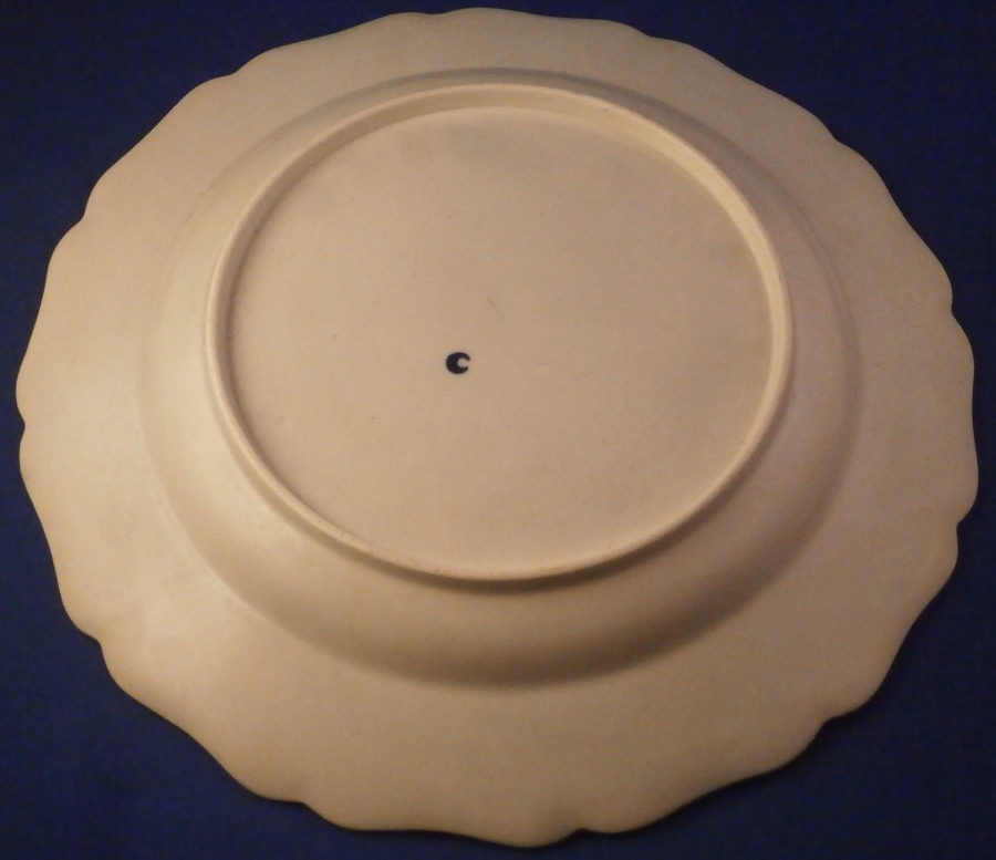 This is a rare dinner plate made by Worcester in the 18th century. It is decorated with a blue and white pattern called the pine cone pattern with a nice rim design and the center having a large blue and white design including what looks to be pine cones and some flowers and leaves. Rare to find this sized plate by them! The piece is in great condition with just some minor use marks. It is marked underneath with the under glaze blue crescent mark as shown. It is 1.25 inches tall and 9.875 inches in diameter. Please email me for more information or other pictures.