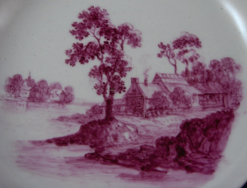 This is a saucer made by Zürich in the 18th century. It is nicely handpainted with large puce landscape scene in covering the entire center of the bowl. #2.15.1.2 in the Zuerich book - Züricher Porzellanmanufaktur 1763 - 1790, Porzellan und Fayence by Franz Boesch . The saucer is in perfect condition. Marked underneath with the underglaze blue Z with three dots. The saucer is 0.75 inch tall and 4 inches in diameter. Please email me for more information or other pictures.