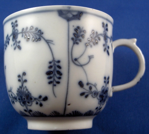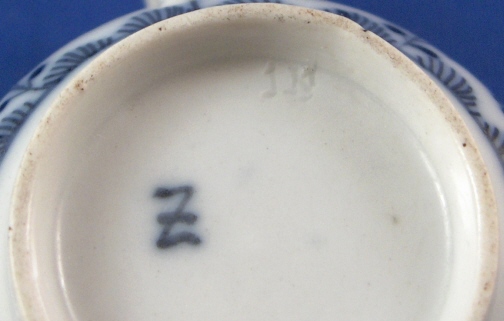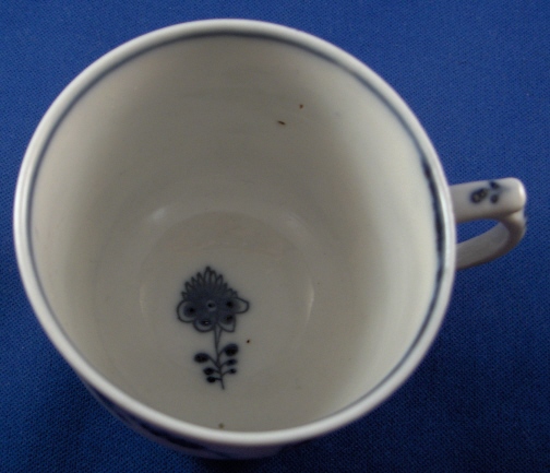 This is a cup made by Zürich in the 18th century. It is nicely handpainted with an underglaze blue strawflower design on the outside as well as a flower on the inside bottom. The cup is in great condition with a hairline in the bottom of the handle (it was never off!) and a some firing spots from the making. It is marked with an underglaze blue Z as well as an incised IN or 1N. The cup is 2.375 inches tall and 2.625 inches in diameter (a bit oval from the making!). Please email me for more information or other pictures.